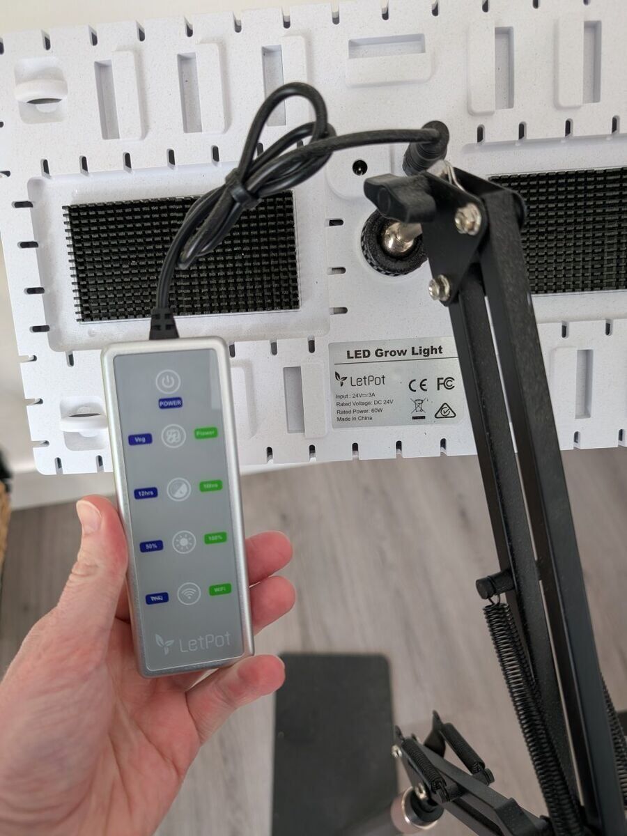 Let Pot LED grow light. Has a 12 or 16 hour timer, and you can toggle between 50 and 100% brightness. Very nice grow light! I've used for 1 year, than upgraded to a different kind of plant shelf that already had a grow light. Brand new light is $90 on their website.