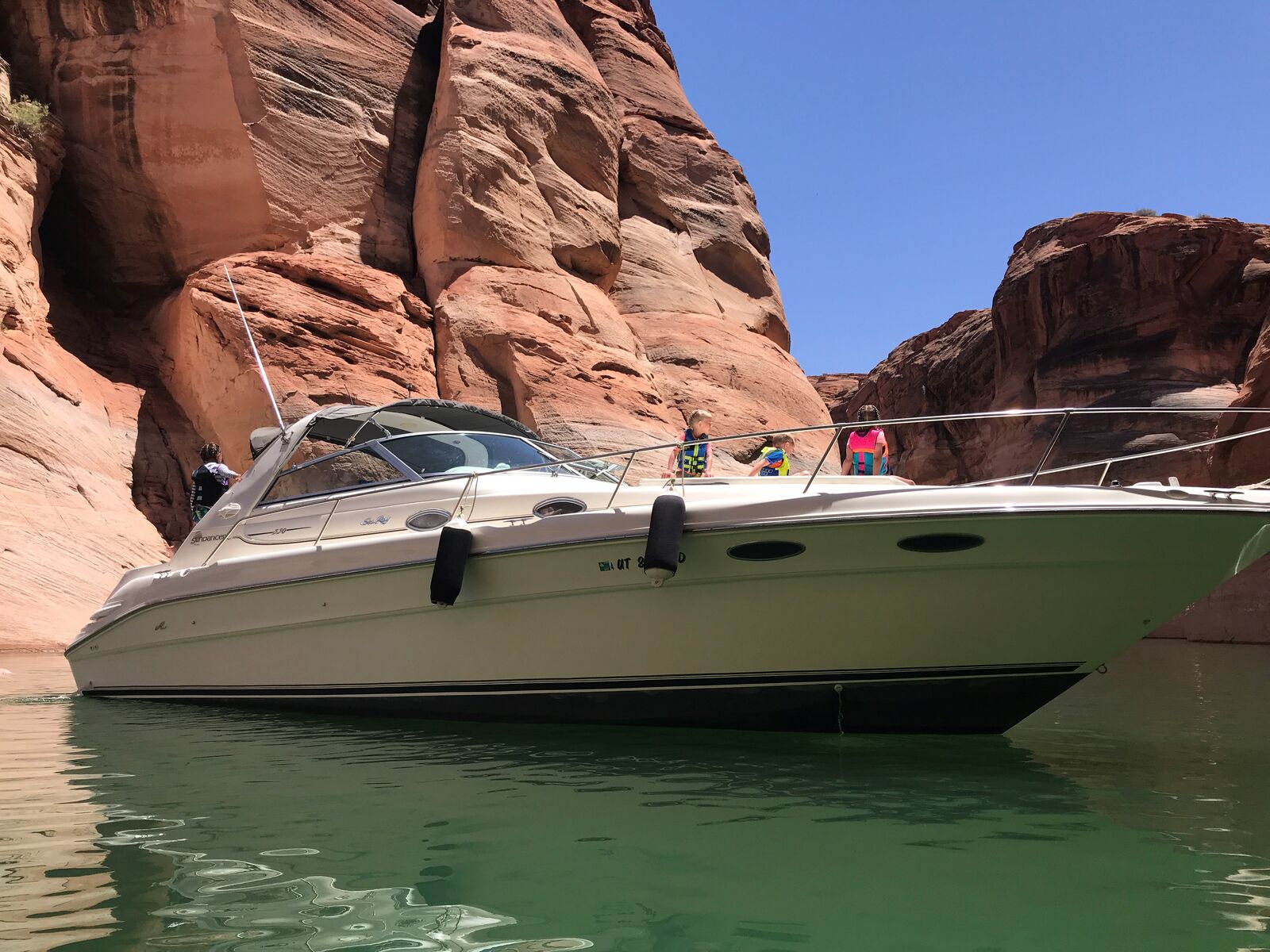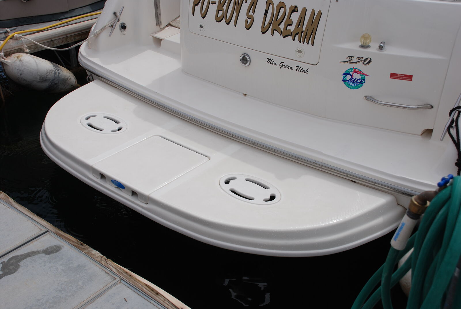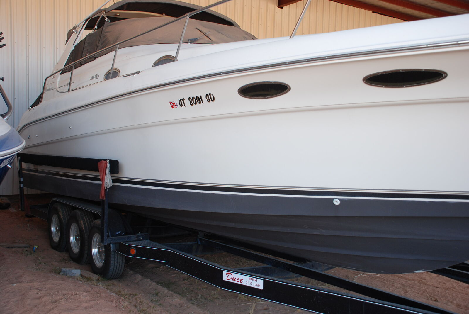 Practically New and one of the Best Boats Sea Ray ever built! This Sea Ray Sundancer has 2 refrigrators, Generator, Center Air & Heat, Stereo System, Marine GPS & Sonar, 12' Beam, Bottom Paint, Windless Anchor, Cockpit Covers, Bimiti Top, Full Enclosure Windows and Canvas for bad weather, 2 Bravo 3 outdrives w/454 Chev Engines. I added and additional Swimplatform that makes the boat 36' overall. This boat will do 45 to 50mph depending on fuel and people levels (Very Fast & Handles Rough Water Extremely Well). Includes all gear, ropes buoys, anchors, gas grill etc. I'm the original owner. See it to appreciate it!