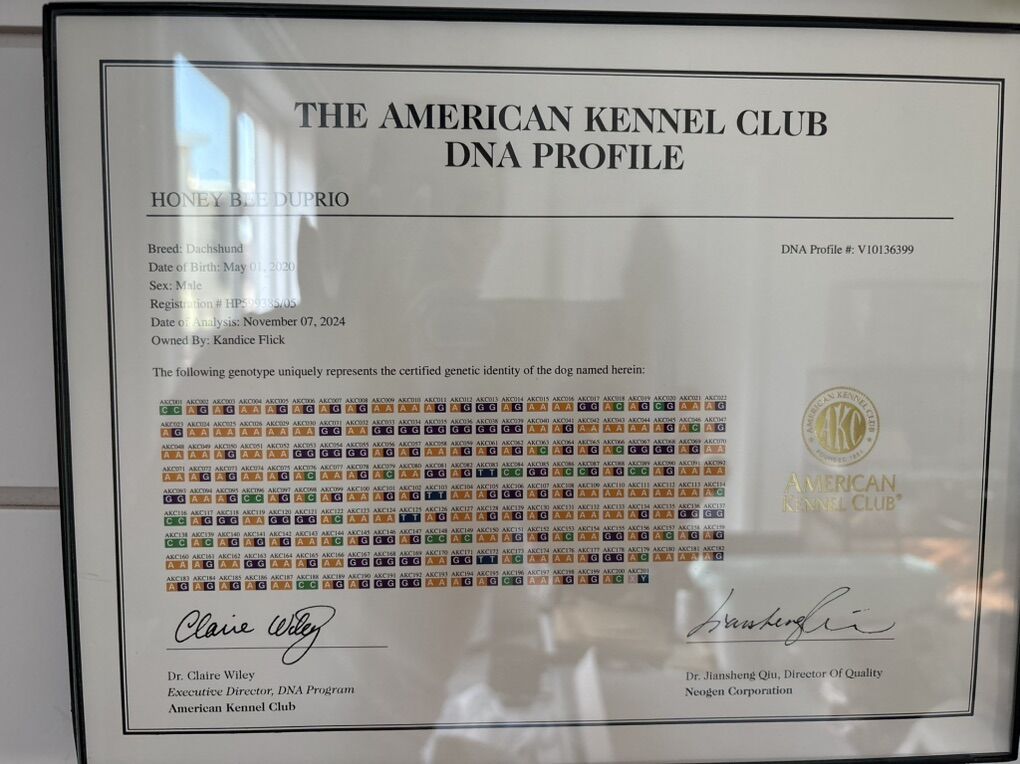 Honey is AKC registered, with a certificate on site we also have a AKC Dna profile on site as well refer to photos he weighs 9 lbs and has a good temperament we have been breeding for 13 years I also do Artificial insemination and can ship directly to your vet I have references upon request please text me at 435-236-4861 for more information