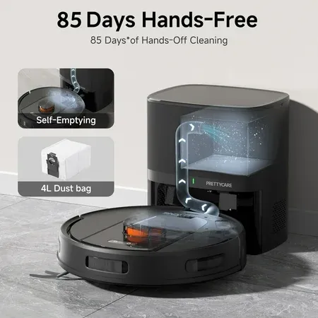 Prettycare robot vacuum cleaner is designed for ease of use. Tips? Do not handle or plug appliance with wet hands. Keep hair, loose clothing, fingers, and all parts of body away from any openings and moving parts. Do not allow the robot to pick up large objects like stones, large pieces of paper or any item that may clog the robot. Turn OFF the power switch before cleaning or maintaining the robot. Turn off all controls. The robot contains batteries that are only replaceable by skilled persons.
