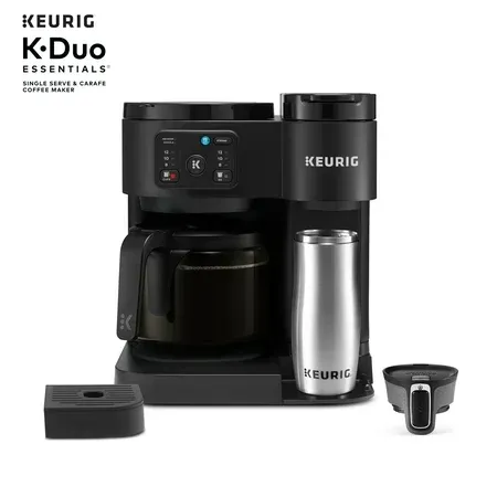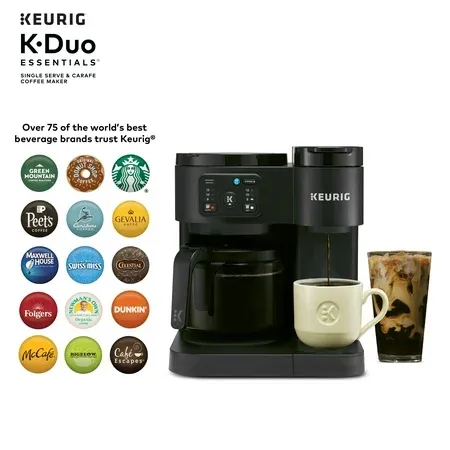 BREW BY THE CUP OR CARAFE: Brews both K-cup® pods and coffee grounds. ONE 72 OZ RESERVOIR: The extra-large 72 oz removable reservoir is shared by both sides for fast, convenient brewing with fewer refills. MULTIPLE BREW SIZES: Brew 8, 10, or 12-oz single cups or 8, 10, or 12-cup carafes. BREW OVER ICE: Adjusts temperature for maximum flavor and less ice melt for iced coffees and teas. STRONG BREW: Brews a stronger, more intense flavored cup. 12-CUP GLASS CARAFE: Included with brewer, along with heating plate to keep fresh coffee hot. PAUSE & POUR: Automatically pause carafe brewing mid-brew so you can serve fresh hot coffee, then return the carafe and continue the brew. COMPACT DESIGN: The versatility of two kinds of brewers in one space-saving unit.