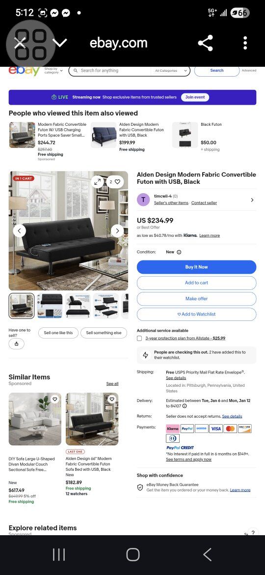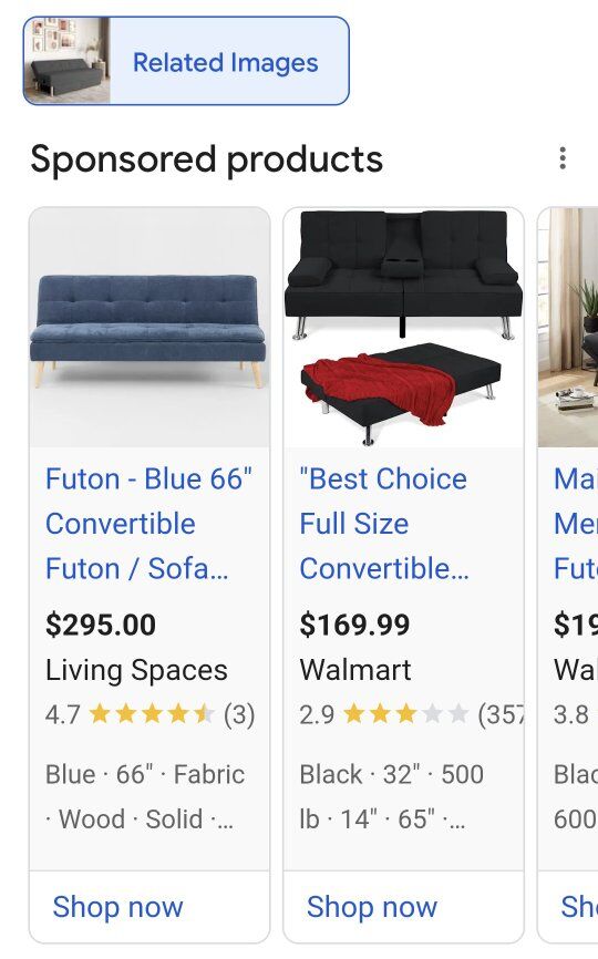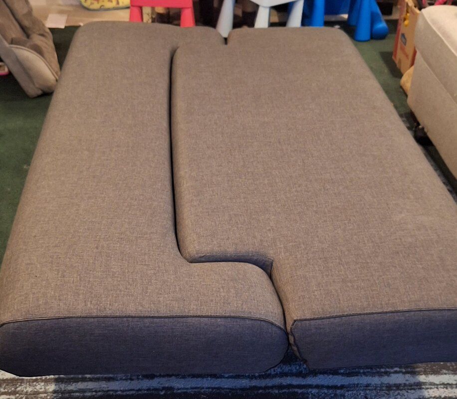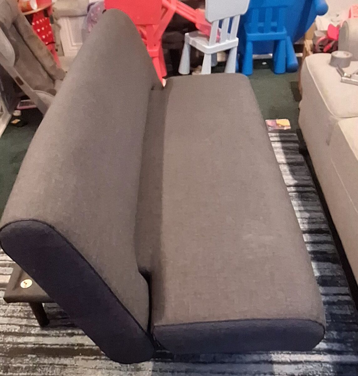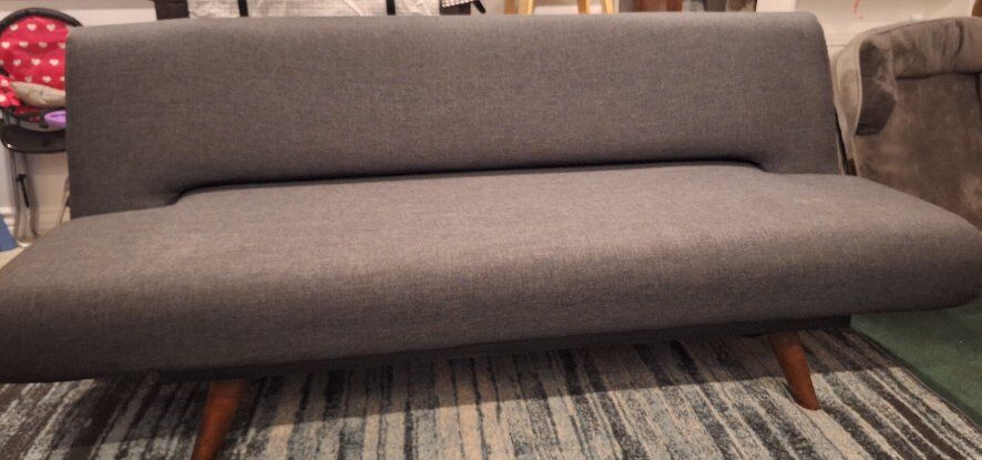 VenmoThis gently used charcoal gray futon sofa sleeper is mear 33" deep. This couch/futon would be great for small places. It folds down for additional sleeping space or if you really want to stretch out to watch that movie.