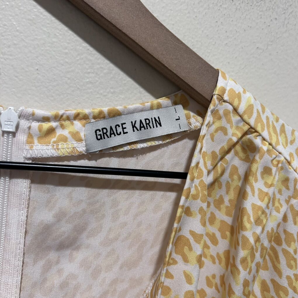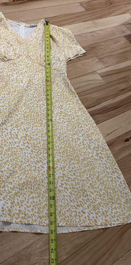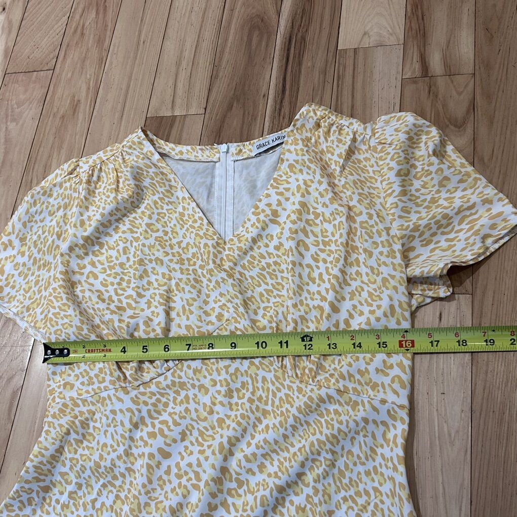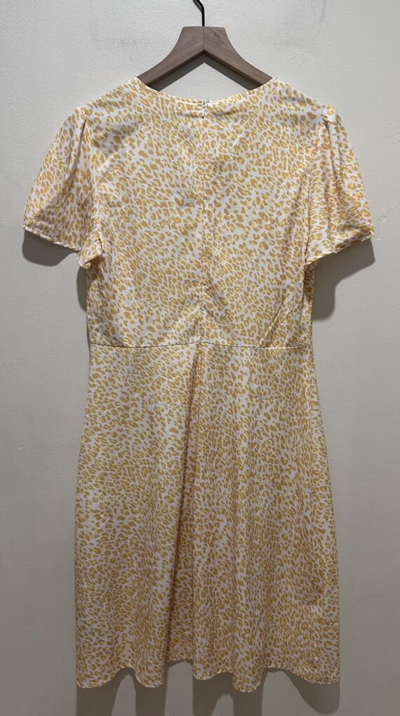 Grace Karin Yellow and White Leopard Print V-Neck Midi Dress - Women’s Size Large - short sleeves with back zipper closure - excellent condition - pre-owned.