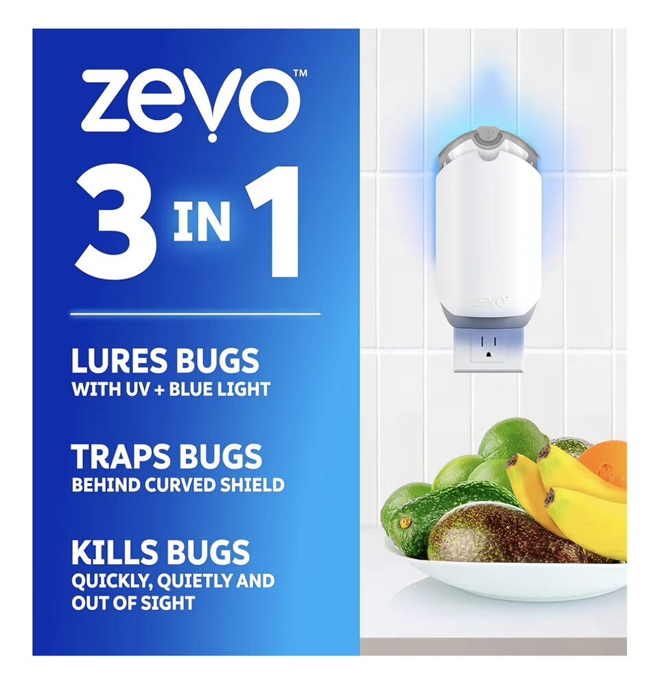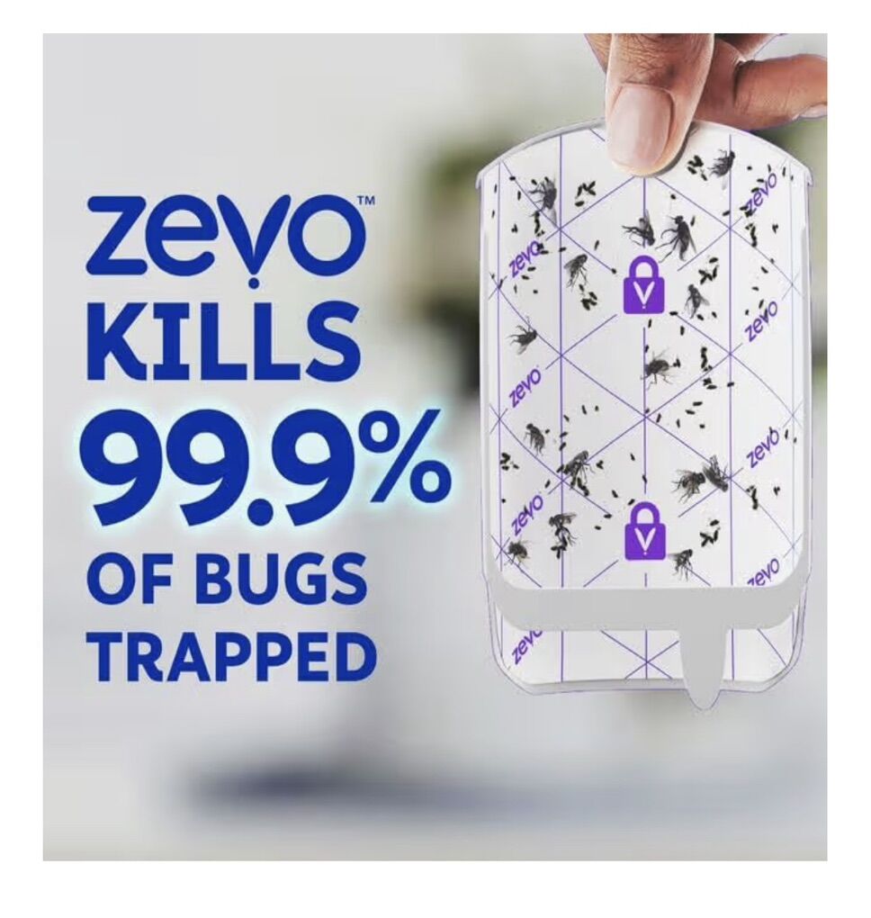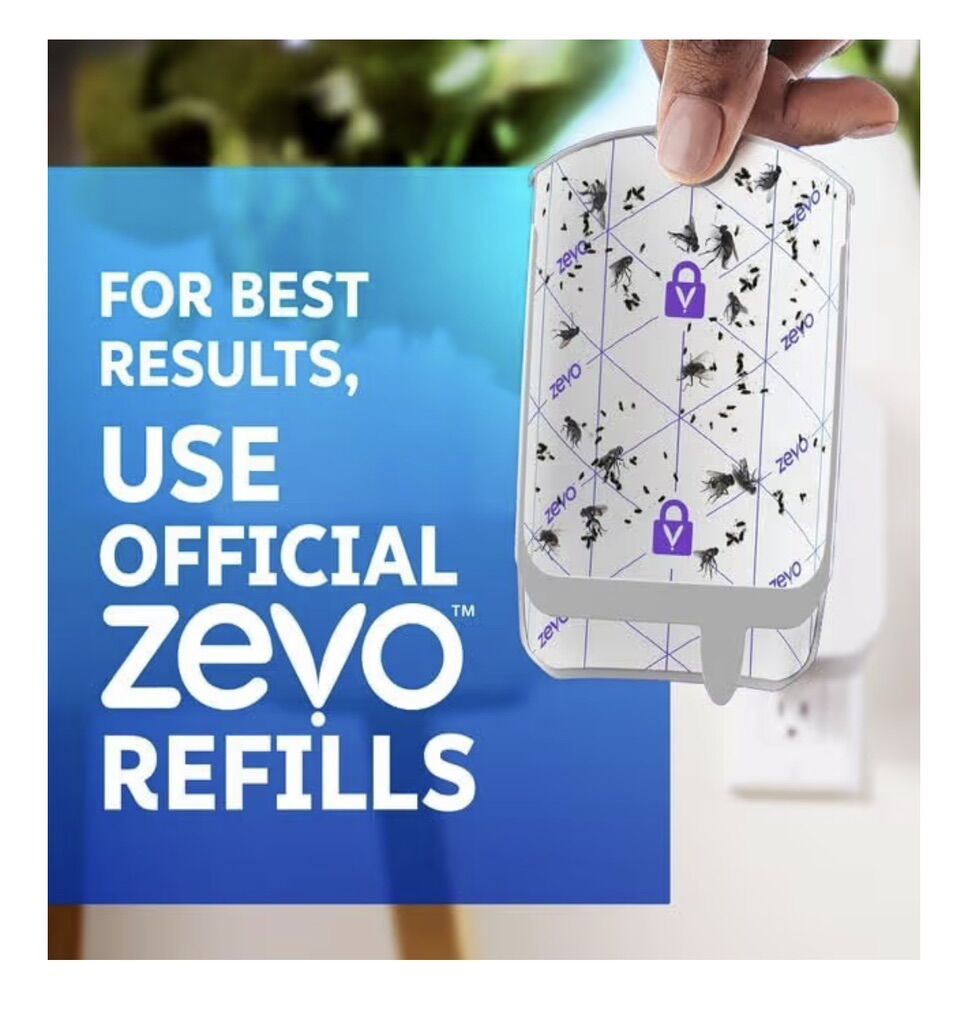 PayPalBox of 4 Zevo Flying Insect Trap & Cartridge - Plug in Fly Trap & Indoor Bug Catcher for Gnats, House & Fruit Flies - Mess-Free - Use in Any Room - Uses Blue & UV Light (1 Plug in Device & 1 Cartridge).