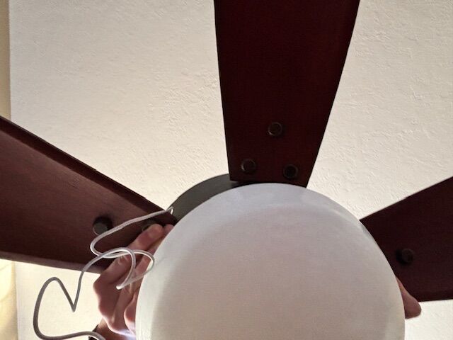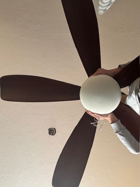 This is a 62" diameter ceiling fan, featuring a reversible 6-speed DC motor for year-round comfort. It includes a Flush mount globe ceiling light.