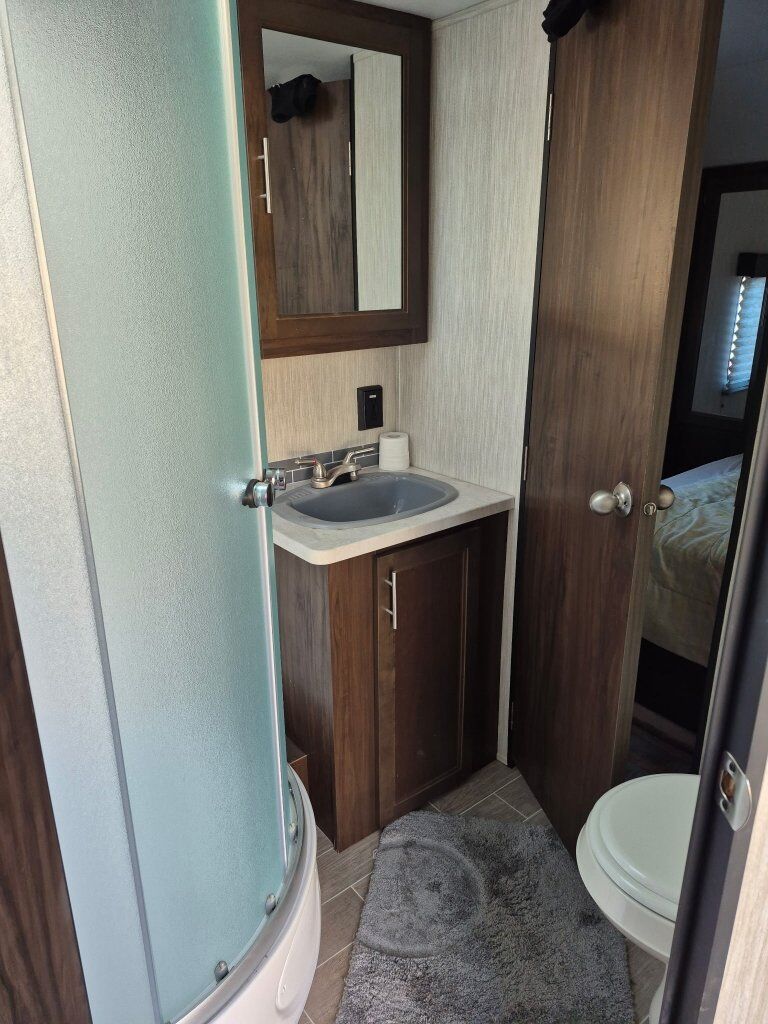 Venmotoyhauler /rear deck patio. holds one atv or 2 dirt bikes fold down beds in rear one queen up front,very nice trailer great shape hardly used