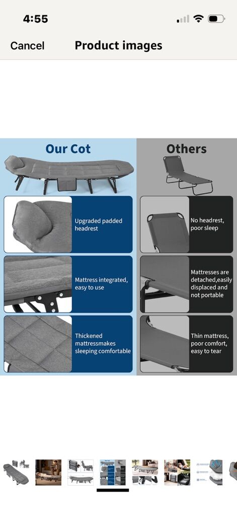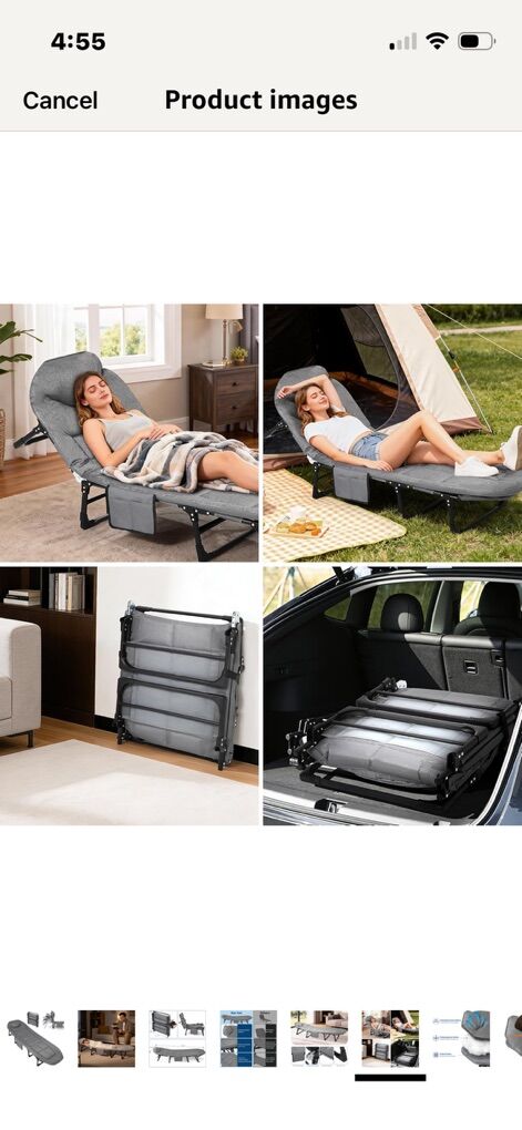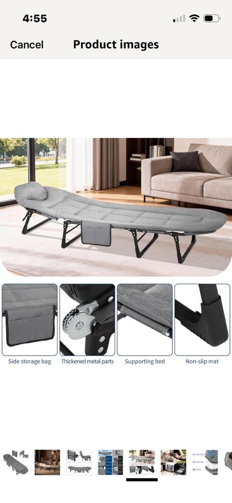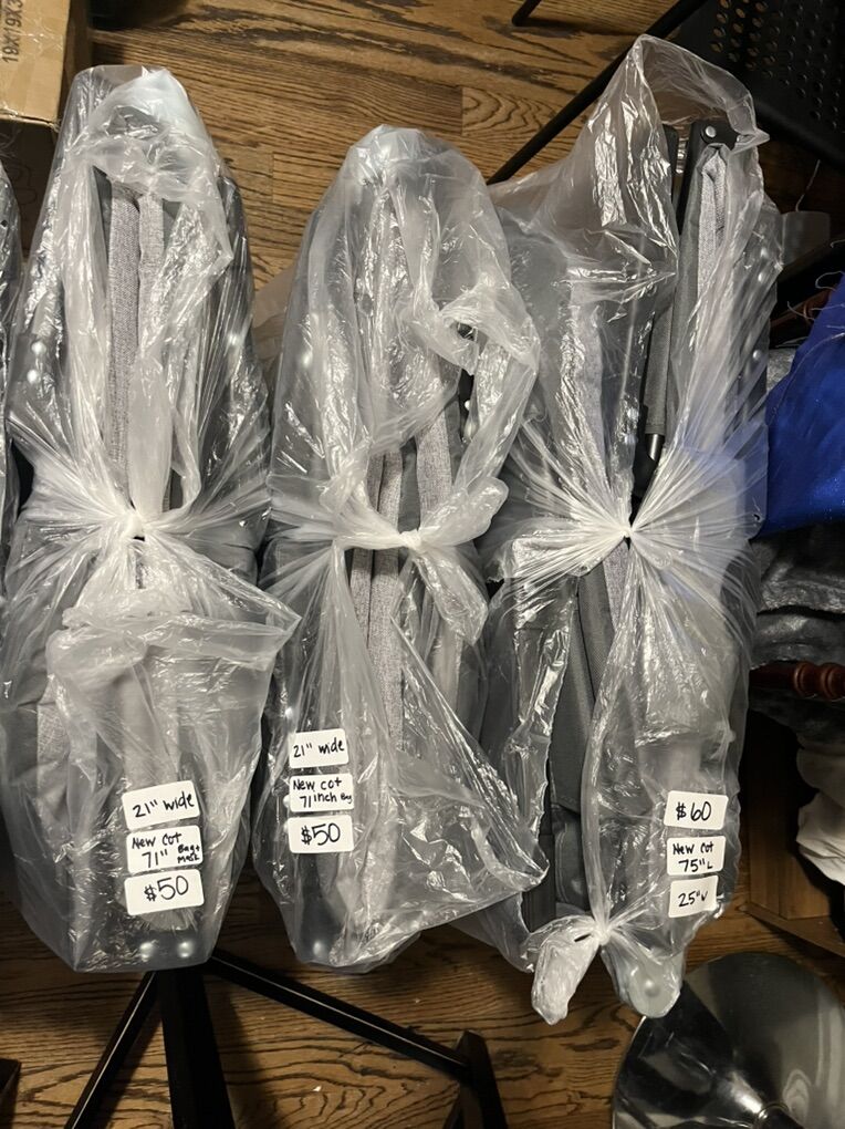 ZelleNEW COTS 71”-75 Portable Folding Bed with Cushion and Pillow, Camping Cot for Adults with Supports 500 Lbs, Lightweight Tent Cot for Patio Beach Indoor Outdoor, Grey Each for comes with carry bag & eye sleep mask/cover I have: 3- $50 each….71” L by 21” W