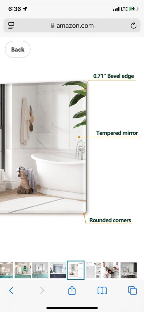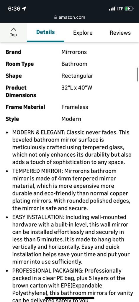 Mirrorons Beveled Mirror, Wall Mirror 40 x 32, Frameless Rectangle Bathroom Mirror with Beveled Edge, Hangs Horizontally or Vertically. Rounded Corner Tempered