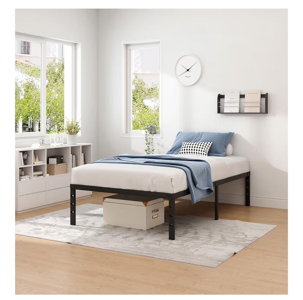Metal Bed Frame,Twin Size Bed Frame with Storage Space,Heavy Duty Sturdy Mattress Foundation,Easy Assembly,No Box Spring Needed, Black,14 Inch,Twin