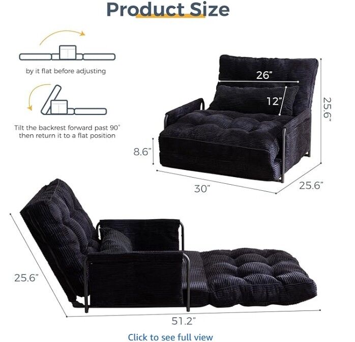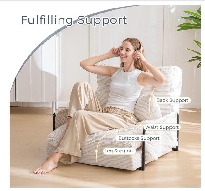 MAXYOYO Adjustable Floor Sofa Couch with Pillow, Multi-Functional Bean Bag Bed, 5-Position Foldable Lazy Sofa Sleeper Bed with Armrest, Versatile Floor Seating for Reading or Gaming, Black or Beige -Single.