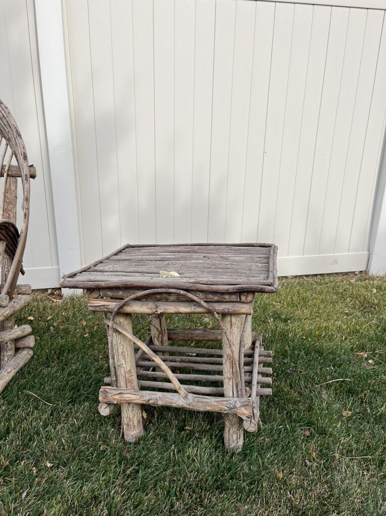 VenmoTwig Willow fan back furniture. Two chairs a couch and an end table. Good condition. They have been outside, wood is worn but all still solid.