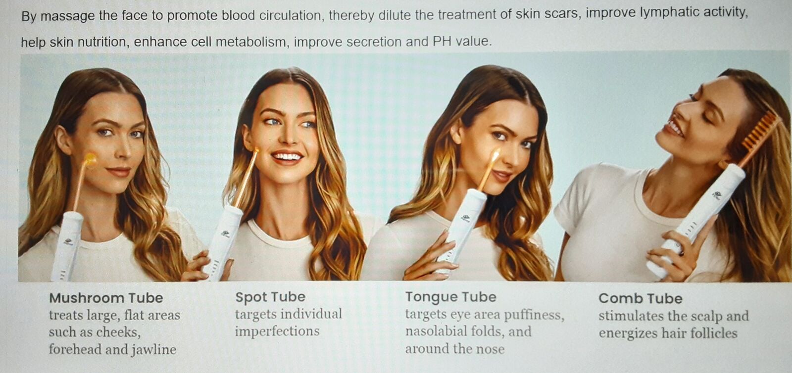 This High Frequency Facial Skin Care Device Set Comes With 4 - Different Glass Tubes: