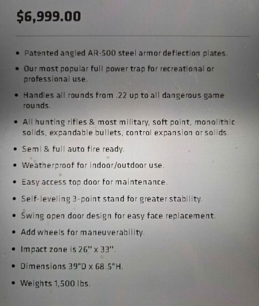Brand new the American range system Warrior ii. Bullet trap sells for $7000 plus tax and freight.