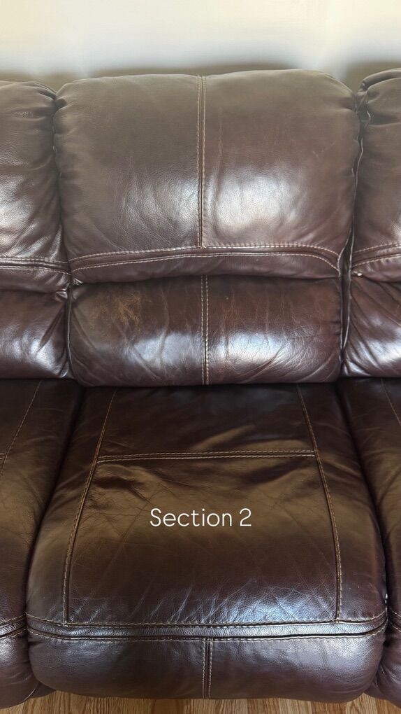 VenmoSpacious dark brown leather sofa with a classic design. The leather is durable with normal wear and still looks great. Very comfortable for sitting or relaxing.