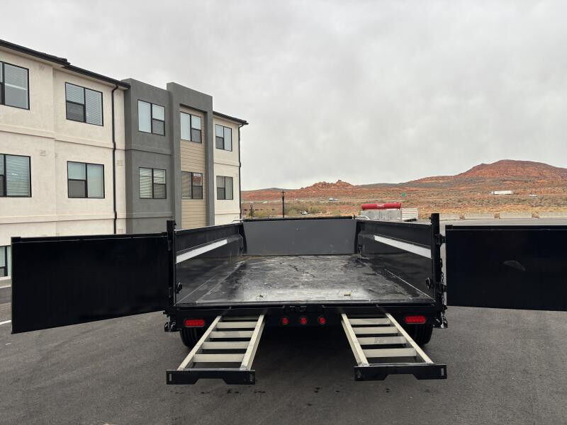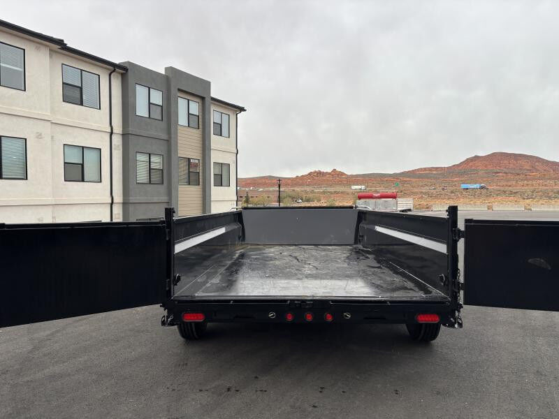 Weight: 4,036 GVWR: 15,400 Payload Capacity: 11,364 Trailer Specs: (2) 7,000# Axles w/ Quick Lubricating Hubs & Elec. Brakes 12V Deep Cycle ST235/80 R-16 Load Range E Radial Tires Forward Self-Adjusting Electric Brakes on Both Axles Multi-Leaf Slipper Spring w/ Equalizer 2-5/16" Ball, Adjustable Demco EZ Latch Coupler 3/8" Grade 70 w/ Safety Latch Hook (2 ea) 12,000# Drop-Leg Jack (Side Wind) 8" Seamless I-Beam (13#) 3" Channel on 16" Centers 7 Gauge Smooth Steel 9" x 72" 14 Ga. Diamond Plate Double Broke Not Included Stake Pockets Along Both Sides (Quantity Varies by Length) Recessed, Grommet-Mounted L.E.D. 7-Way RV Modular Cold-Weather Wiring Harness Spare Tire Mount Professional Finish w/ Primer Standard (4) 1/2" D-Rings Inside Bed to Secure Equipment|Along Sides and Rear for Cargo Control Complete Breakaway System w/ Zip Breakaway Cable 5A 110V on Board Battery Charger Rear Combo Gate (Barn Doors & Spreader Gate) Power Up/Gravity Down Hydraulic Pump 5-stage Telescopic Cylinder 24" Or 48" Tall (10 Ga) with formed Channel Supports Rear Stabilizer Stands Convenient Side-Step to Access Top Rail Lockable Pump and Battery Box mounted in Front of Bed Fully-Formed Tarp Shroud with Tarp & Rear Tarp Rod Holders 3"x 2" Rectangular Tubing