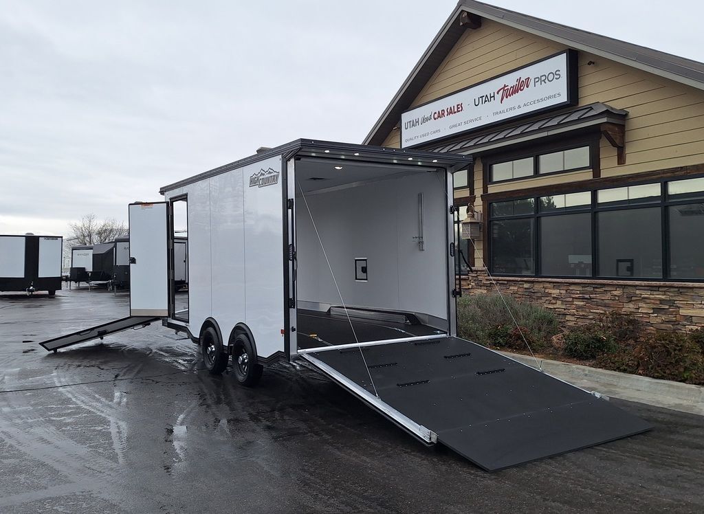 LIMITED TIME $216 A MONTH WITH ZERO DOWN WITH OUR SPECIAL LOCAL CREDIT UNION PARTNER!!! NEW!!! 8.5x16 High Country Enclosed All Aluminum Hybrid Snowmobile/UTV/ATV Pkg!!! LIFETIME FACTORY WARRANTY!!! FULLY INSULATED!!! You need to see the workmanship in person, these are not your standard trailers, these are the TOP OF THE LINE!! PREMIUM!!! REAR CANOPY WITH RECESSED LIGHTING!!! Super heavy duty Spare Tire Mount, no breakage here!!!! Dovetail Ramp!!! 7TB054539