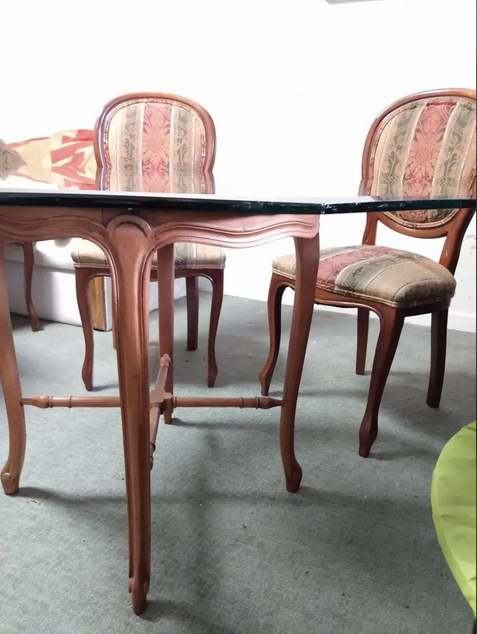 There are 2 more matching chairs available but because they are threadbare and need to be reupholstered I'll just throw them in as a bonus if wanted.