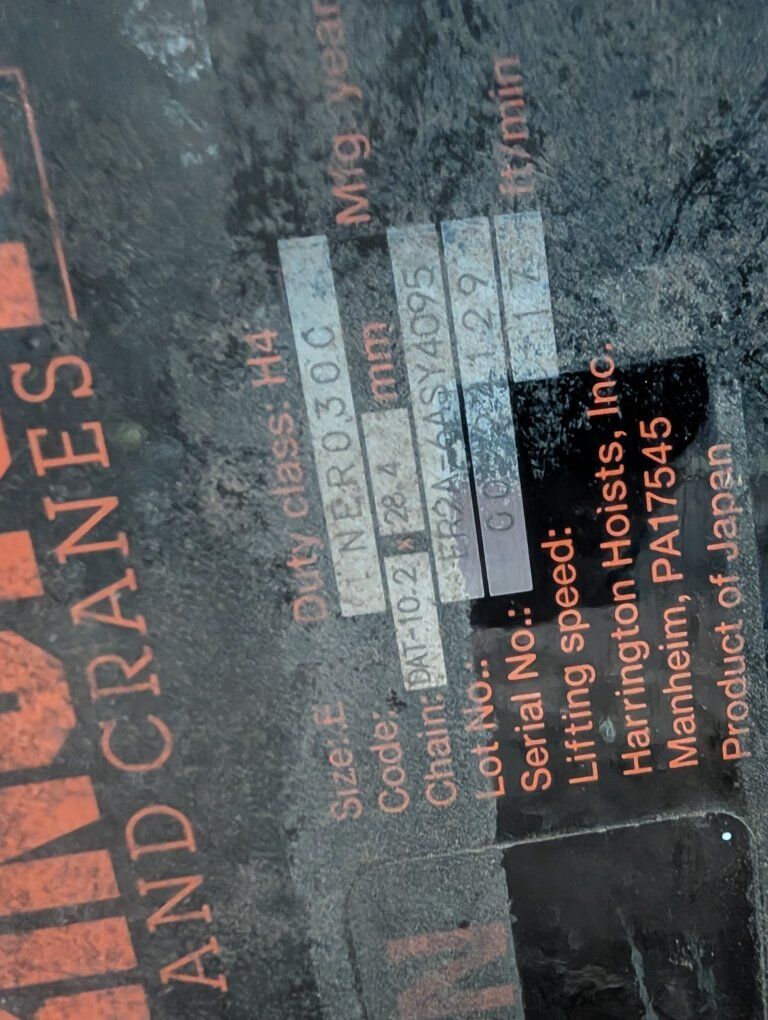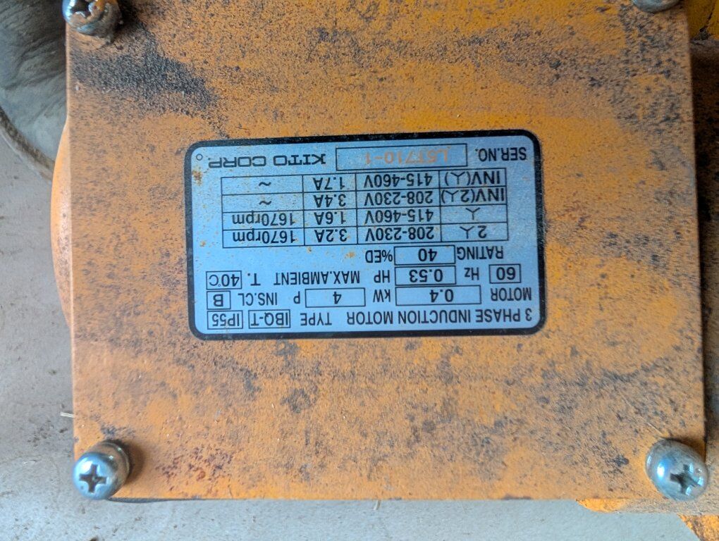 Venmoharrington hoist, motorized trolley, 230 volt 3 phaze