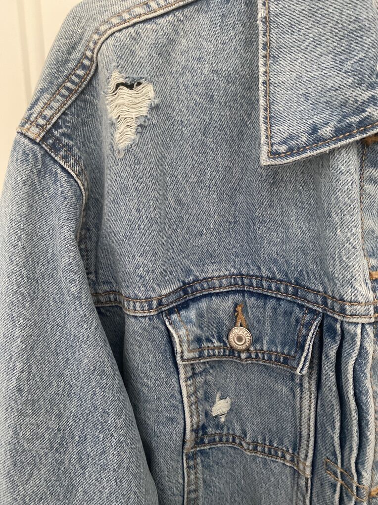Brand new with tags. Size XXL. Distressed look. Lighter denim. Just never wore.