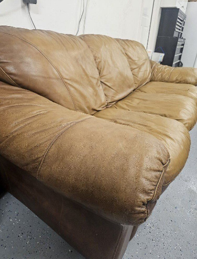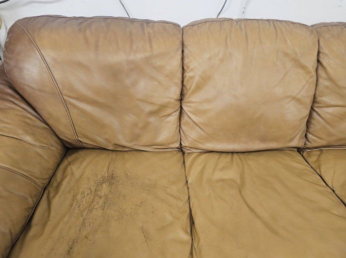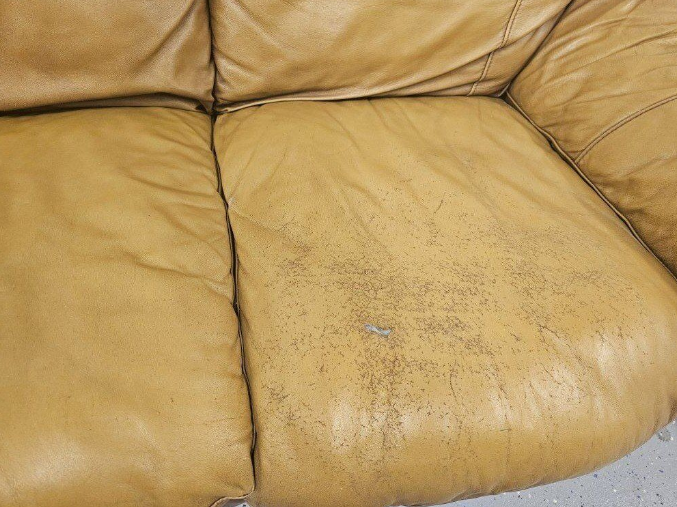 Very comfortable couch! Doesn't seem like they make them like this anymore Cracking and wear in the two end seats as shown in pictures a small tear in one cushion.