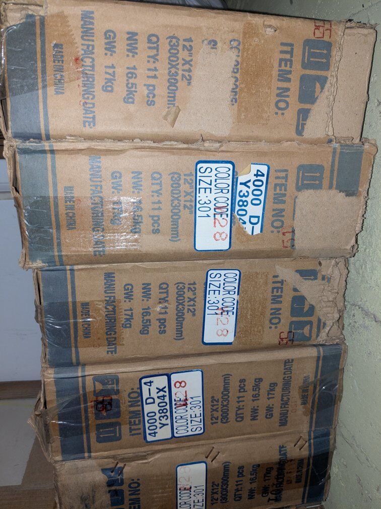 1 box of tile is black all the other are a very light taupe, tan color. There are 3 different brands so I'm not sure if they are the exact color but they are all very close in color..There are also 8 boxes of 3X6 marble tile with 8 tiles in each box. they are also a light tan color.please call or text with any questions. They are all brand new and unused still in the boxes. 15 boxes have 11 tiles each 3 boxes have 15 tiles each. the box with black tiles has 11 $5.00 per box