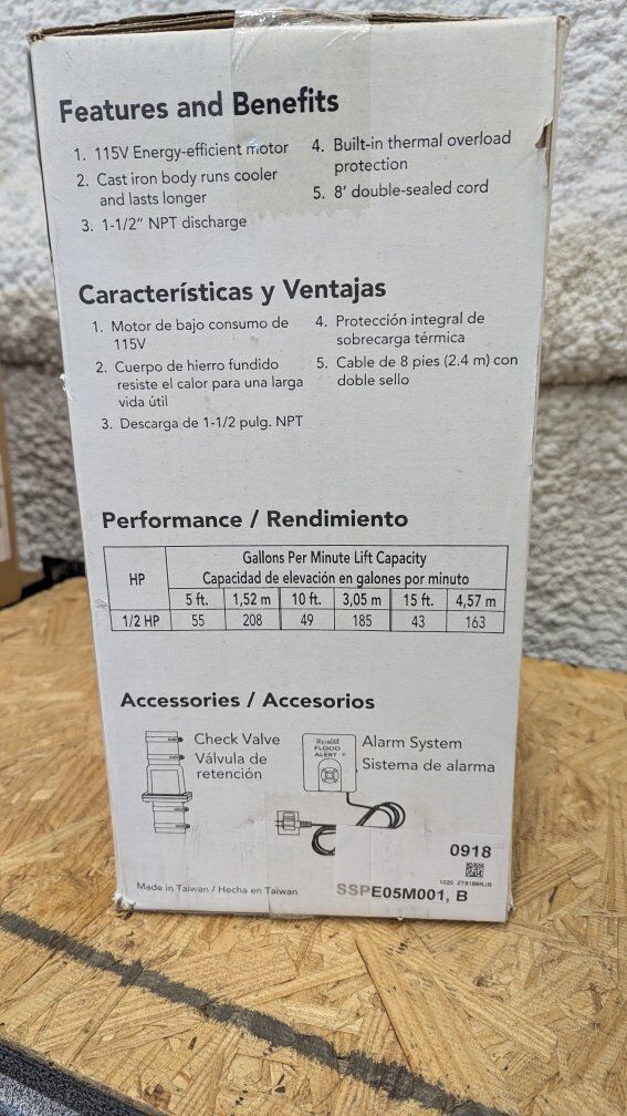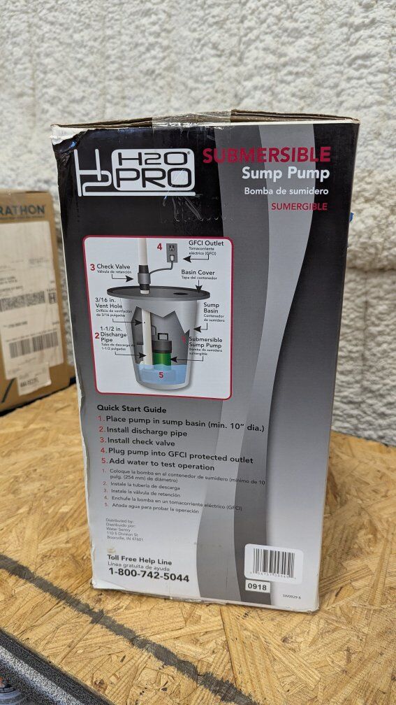 VenmoBrand new H2O Pro submersible sump pump, engineered by Zoeller, never used and still in the original box. This pump features a 1/2 horsepower motor with a flow rate of up to 55 GPM (208 LPM), making it ideal for residential sump pits and basement water removal.Great option for basement flooding prevention or as a reliable backup pump. Retail-quality unit at a discounted price.