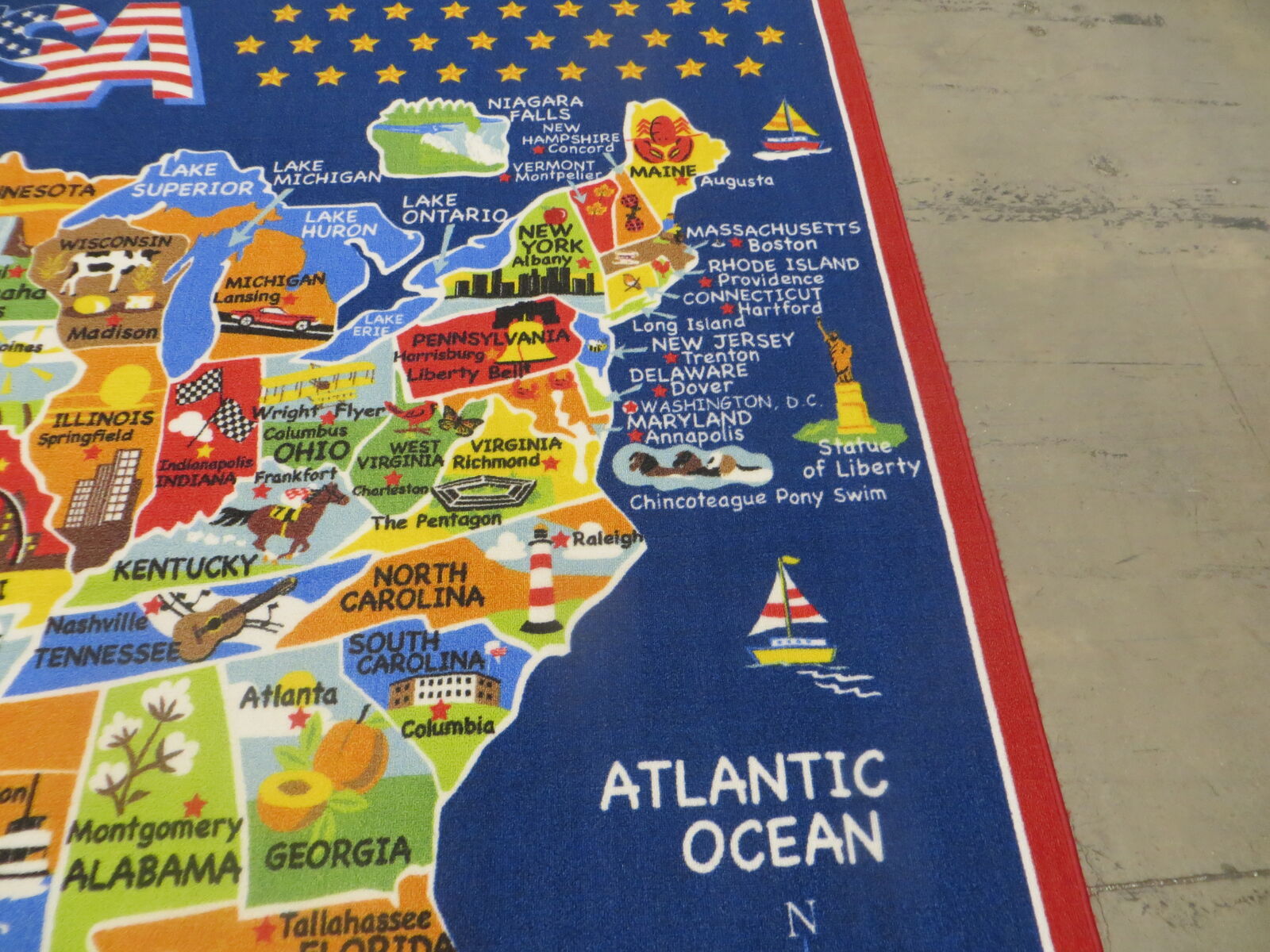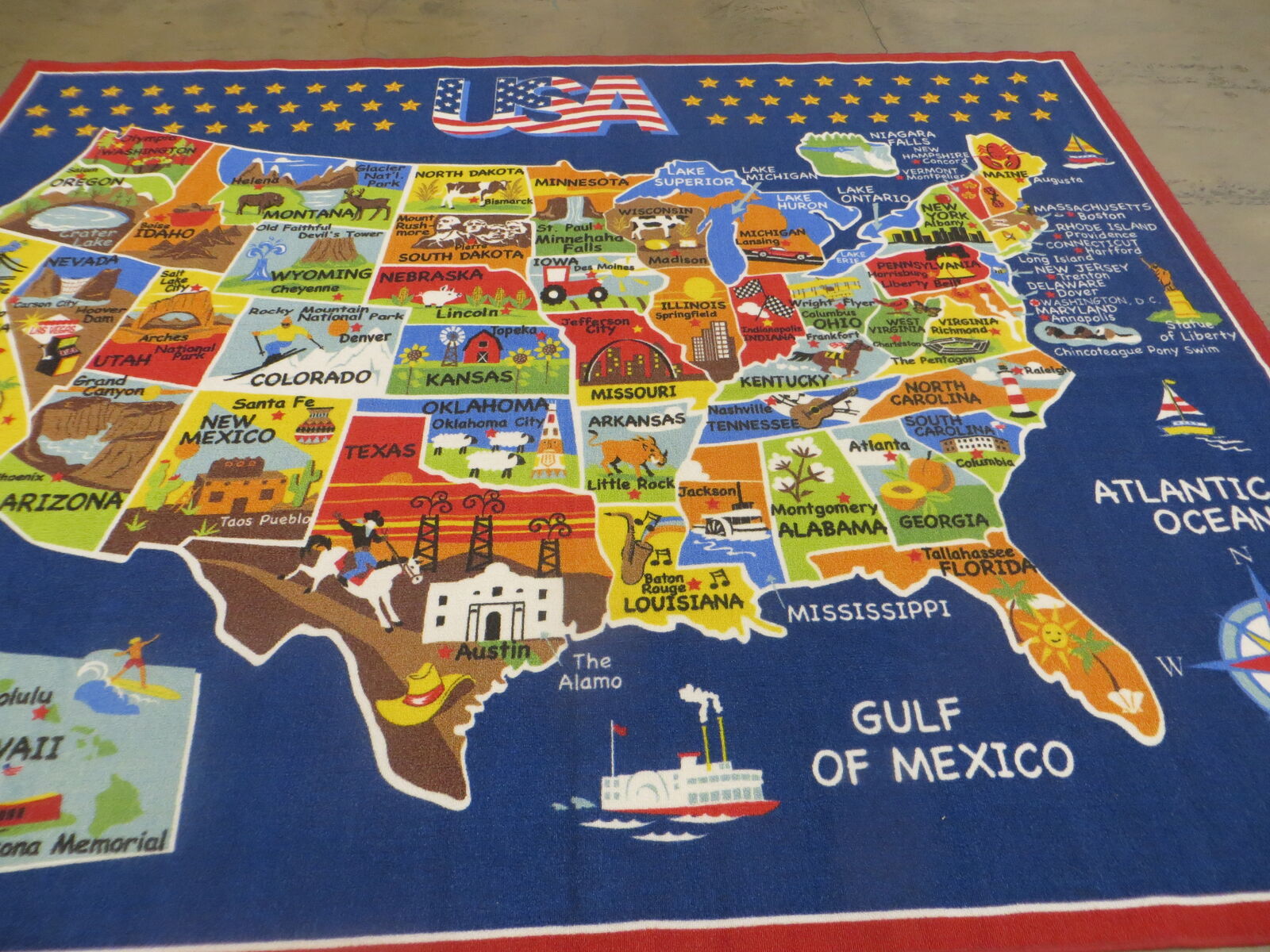 We have one GA USA Map 7 x 10 Area Rug 1085764 #104784 available. This rug has been lightly used.