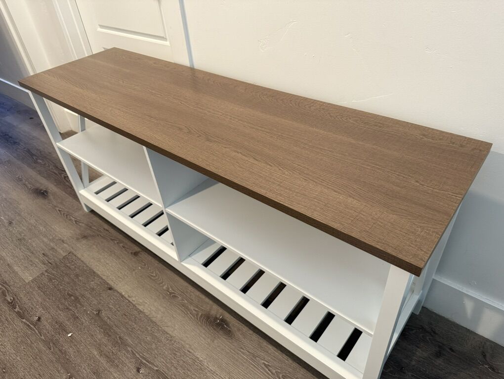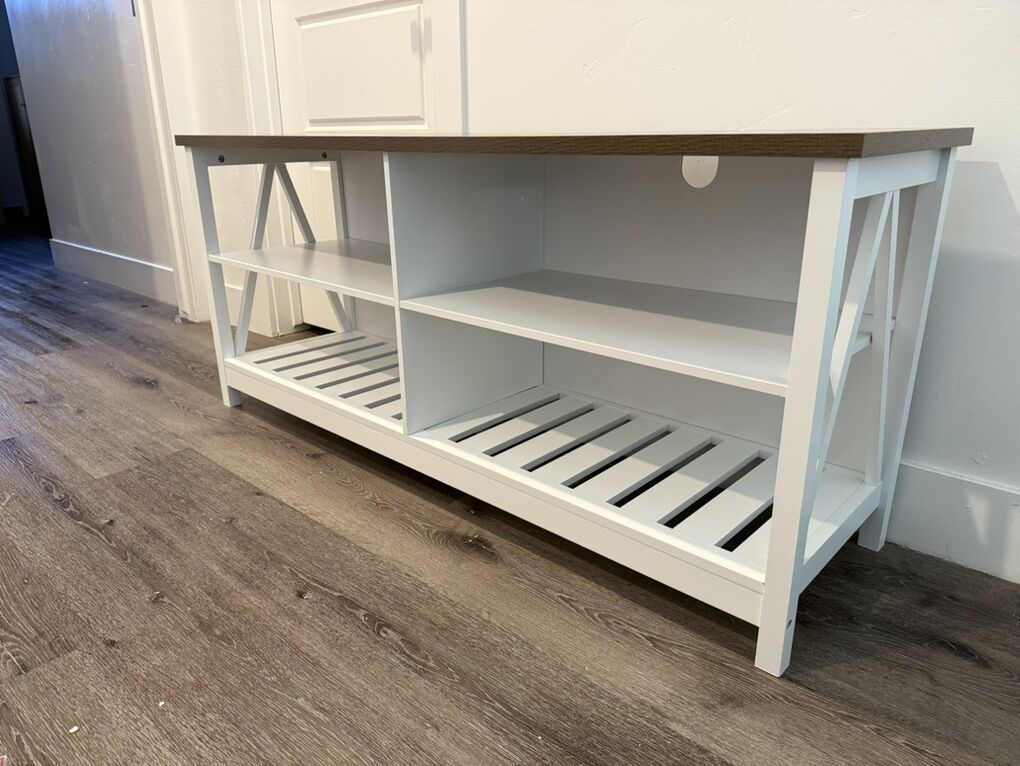 VenmoBrand New Farmhouse TV Stand, Entertainment Center TV Console with Storage, Media Console for Living Room, White and Brown