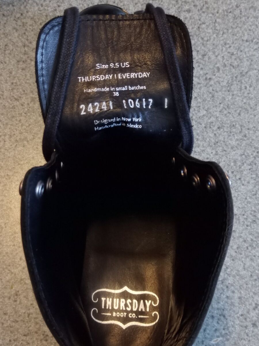VenmoThis is a like new pair of black men's Thursday Captains in size 9.5, standard or "D" width. They were worn less than a handful of times. They have been wiped down inside and out, polished, and are ready to wear. I'm very particular with my boots. Please see all pictures, especially those of the soles and heels, confirming very minimal wear. They are from a smoke-free home. Thursday recommends sizing down a half size from your sneaker, or true Brannock size. these retail for $199. Save yourself some money/taxes and buy locally without having to worry about stock availability, or waiting for shipping time. Cash or Venmo only. \