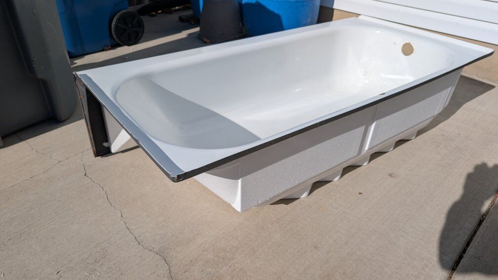 VenmoBOOTZCAST Premium Insulated, porcelain enameled, comfort bathtub. 60"L x 30"W x 14-1/4"H Brand new, never used. chip from dropped hammer. $100