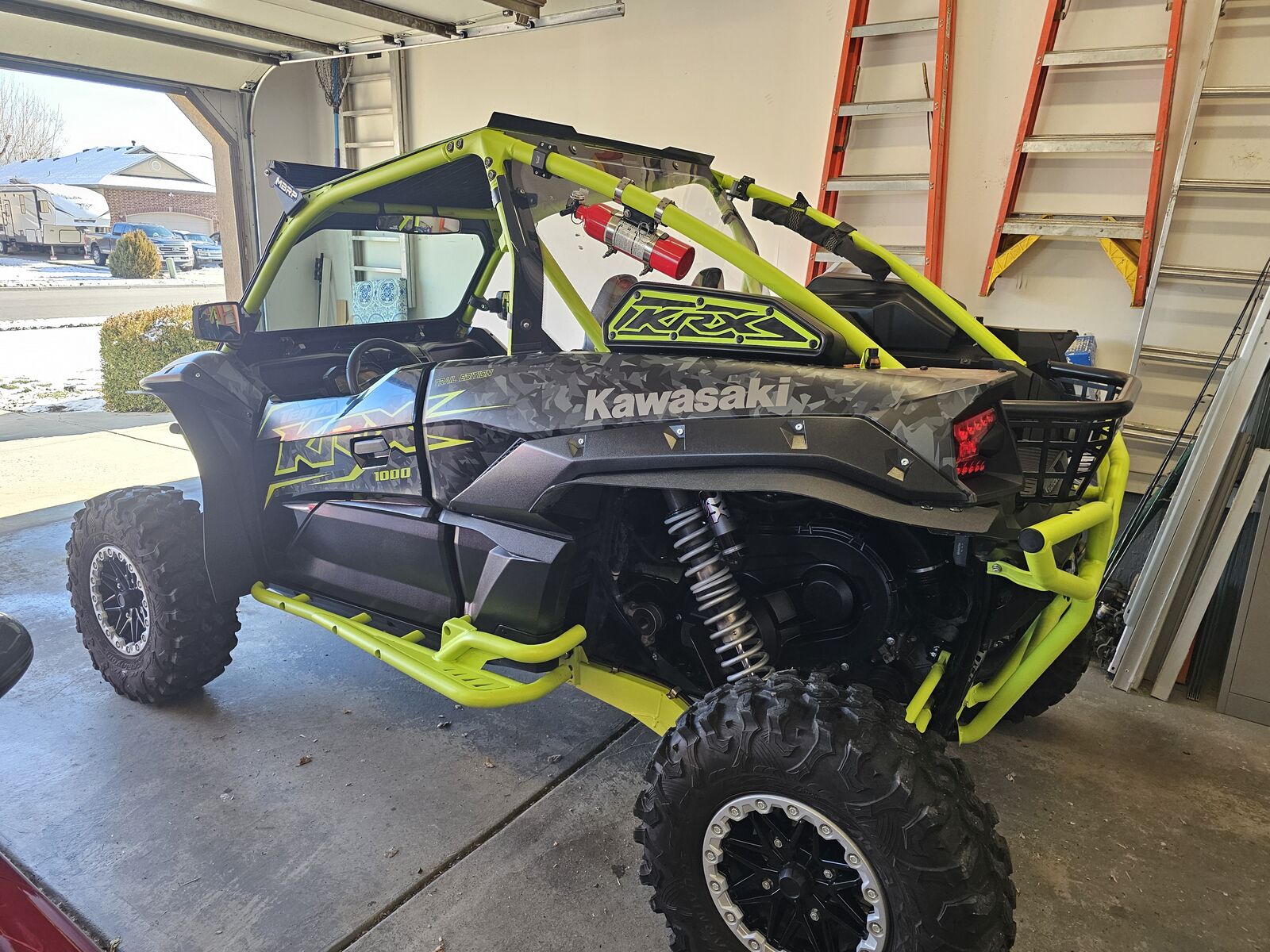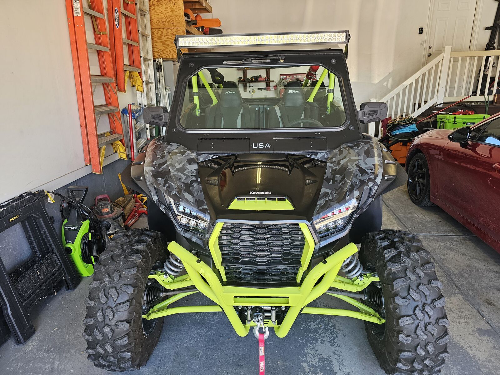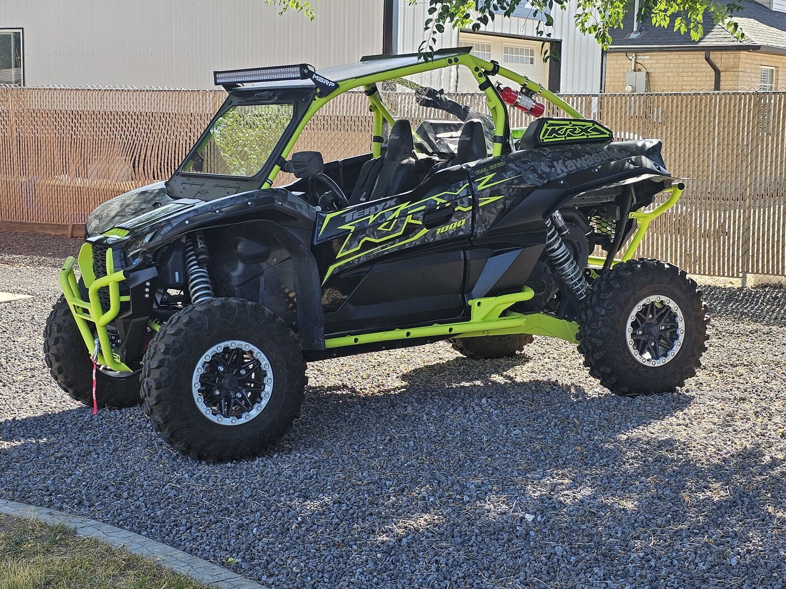 Machine has a MBRP exhaust with a dynojet tune and clutch kit with adjustable weights. Comes with dynojet pv3 tuner and weights for rollers. Has vented USA windshield and rear windshield. Has metal roof with light bar and matching color diamond padding. Has new All things utv tender springs also has transmission skid plate. Has roll over valve and new fuel filter. Has 4 point harnesses with seatbelt bypass installed. Also has MB lighted whips 4ft and street legal kit.