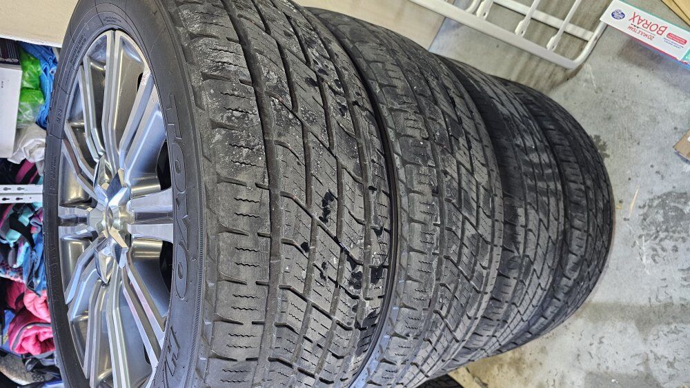 Venmo$900 or best offer 275/50R21 Wheels & Tires off our 2021 Lexus LX570 - will fit Toyota Sequoia, Tundra. Both are in great shape. 8.5JJx21 ET54 Center Bore / Hub Bore: 110.1 mm Bolt Pattern (PCD): 5x150 Wheel Fasteners: Lug nuts Thread Size: M14 x 1.5 I work in South salt lake and live in Eagle mountain, so I could meet in between if it's easier. text or message Mike at 801-809-2220