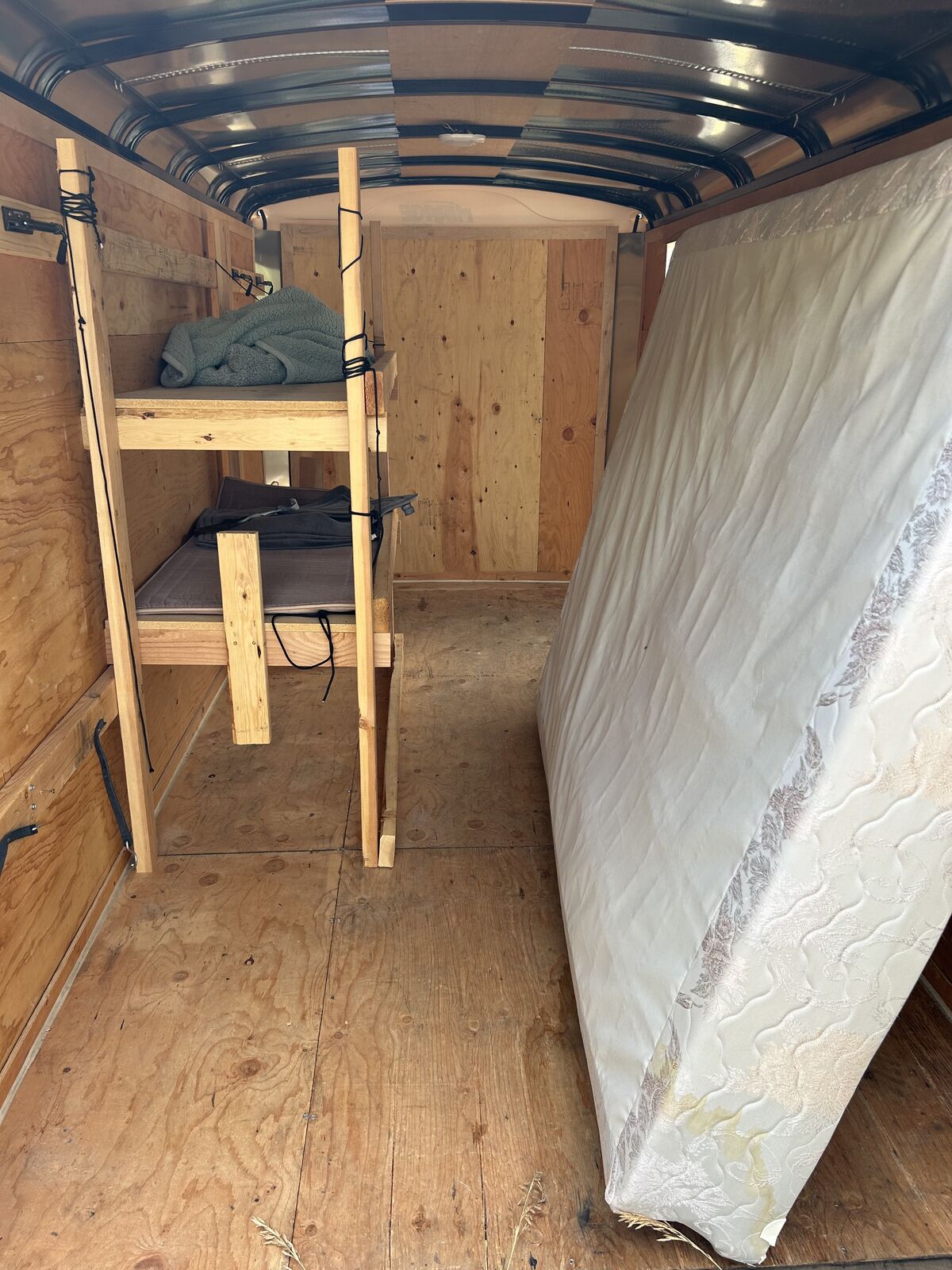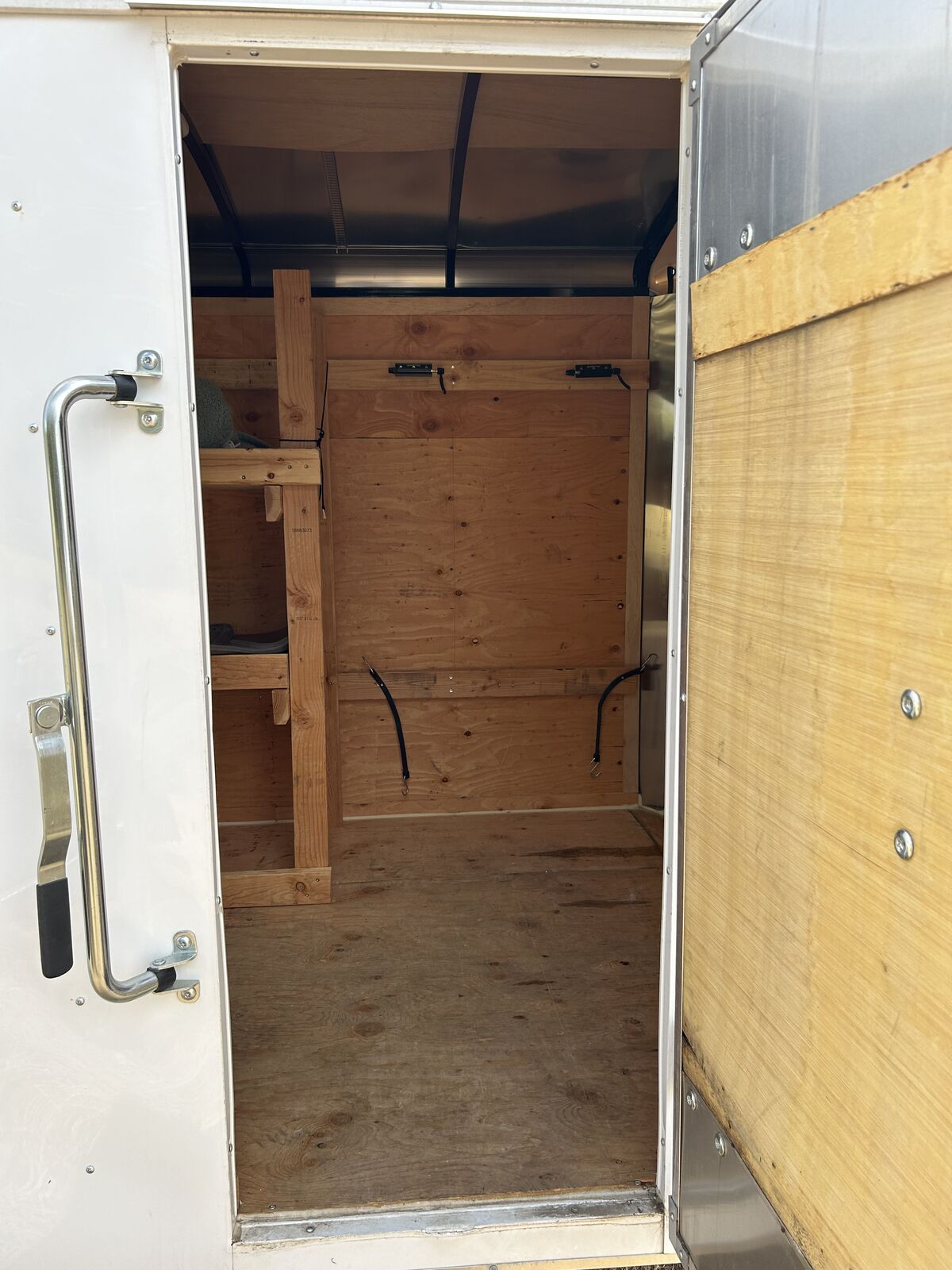 ZelleThis trailer has been used mostly for light duty family trips to haul bicycles and camping gear. I built some shelves inside which could be easily removed and new shelves built inside according to the uses desired for the trailer. It's been very handy for us but we no longer have a use for it. It has stickers on the back from places we have taken family trips...but the trailer hasn't gone all those places.