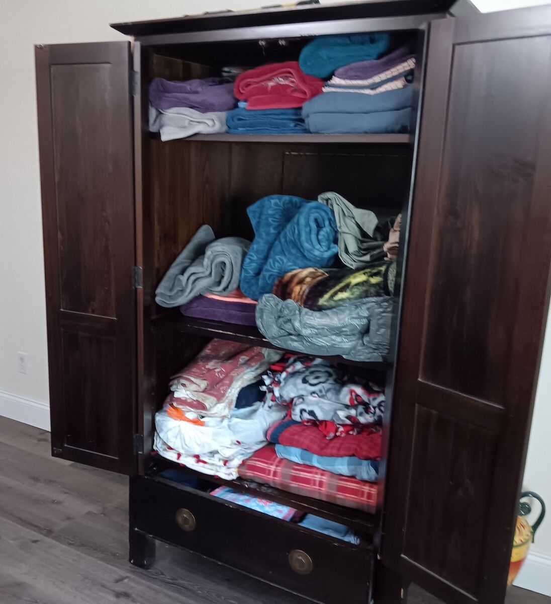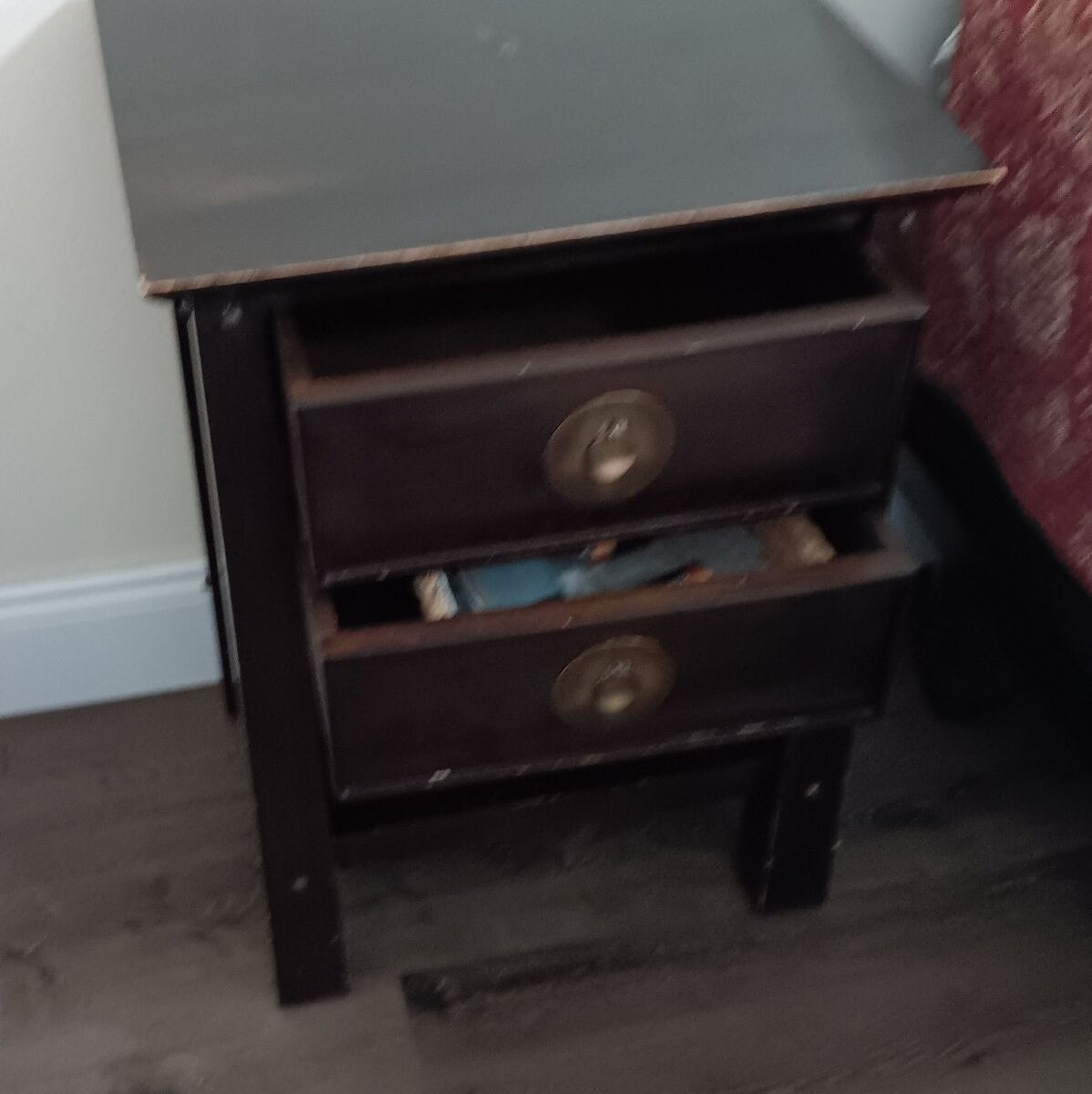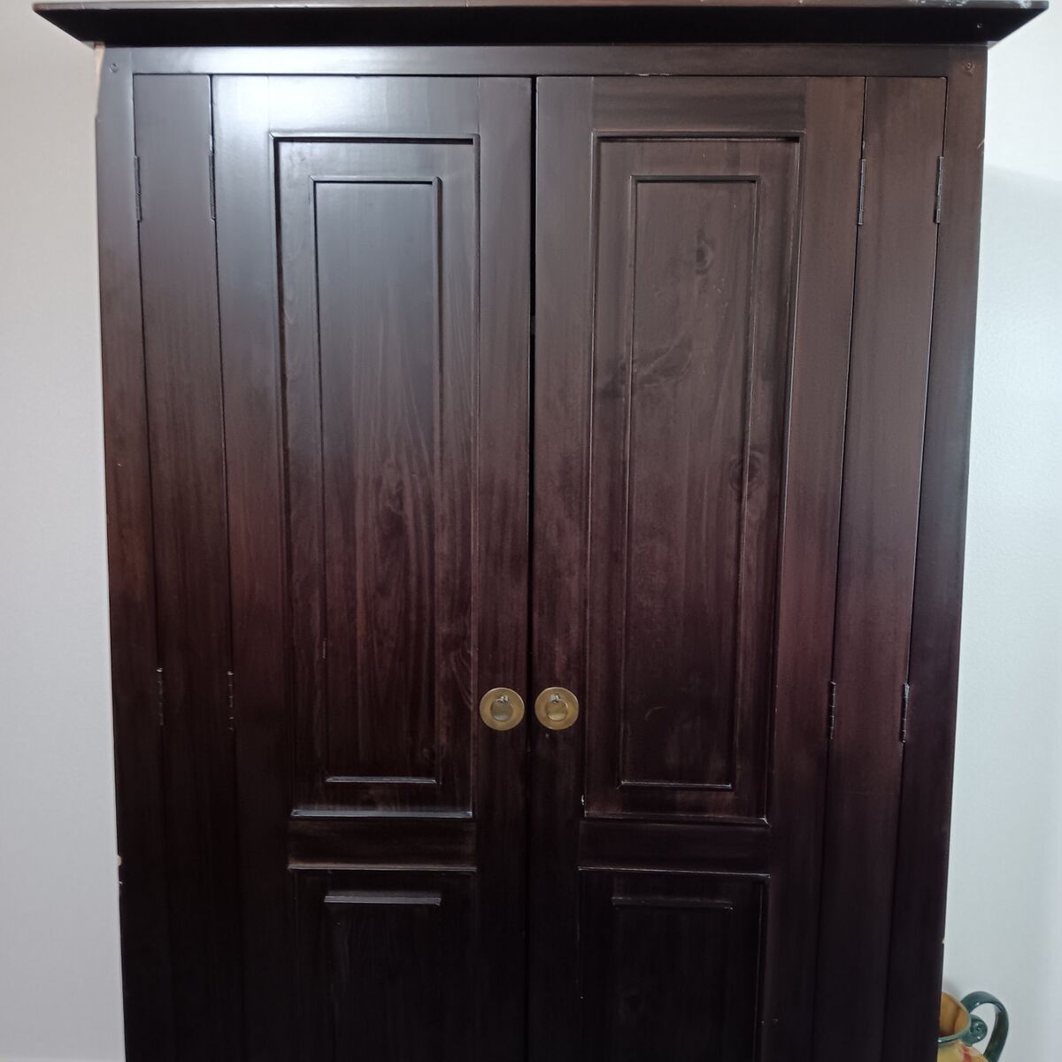 VenmoPrice reduced This is a four piece bedroom set that includes an armoire, dresser and two night stands. The armoire is 71" high, 39" wide, and 23" deep. The dresser is 42" high, 35.5" wide, and 20.5" deep. The night stands are 26.5" high, 15.5" wide, and 18.5" deep. Thanks for looking!