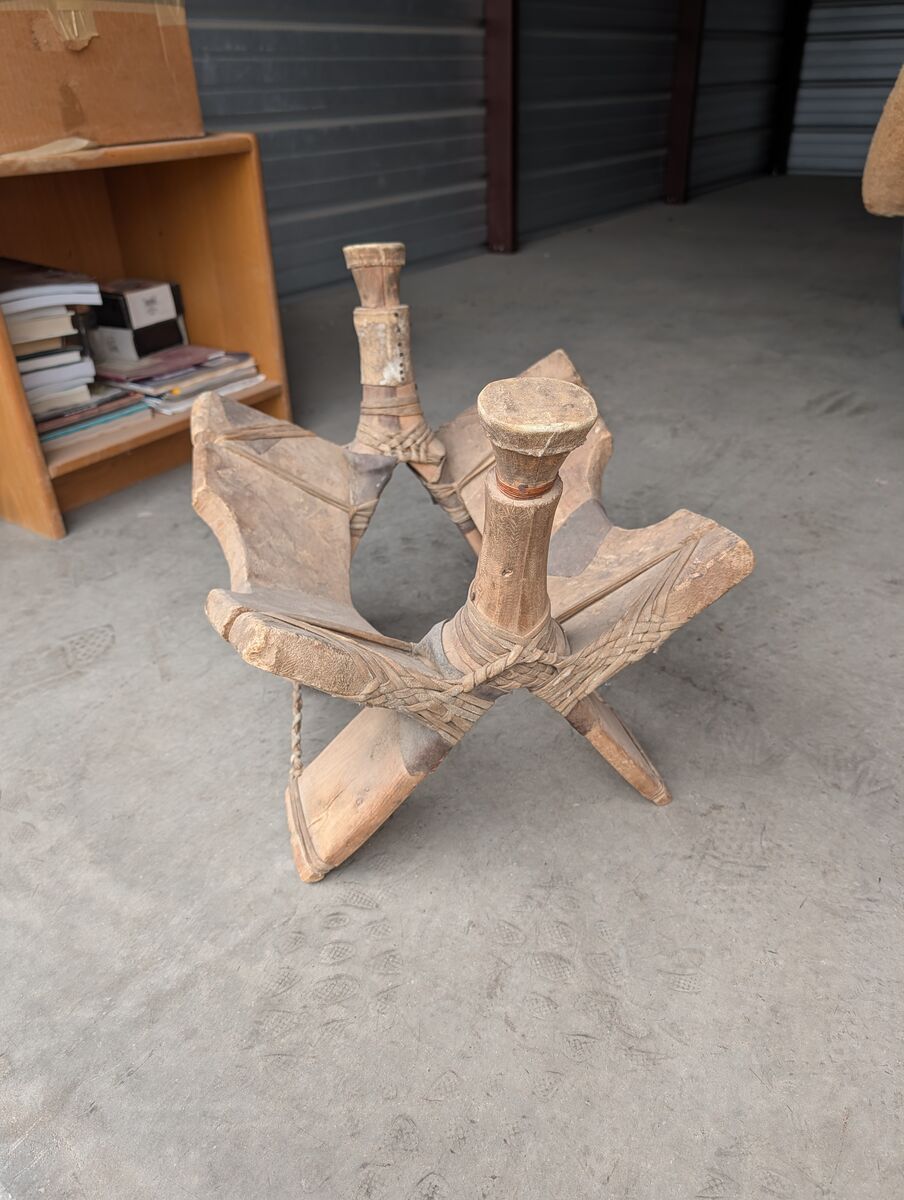 VenmoSelling a genuine, authentic wooden camel saddle frame brought back from Saudi Arabia. Unlike the mass-produced tourist souvenirs, this features traditional construction with hand-carved wood and authentic rawhide/leather lashings. Why buy this? Most of these on the market are already upholstered into ottomans and sell for $120+. This is the solid raw frame, giving you the perfect blank canvas. You can: Add a leather or kilim cushion to create a custom high-end ottoman. Use it as-is for a rustic, desert-boho decor piece. Display it as an authentic Middle Eastern artifact. Condition: Solid and sturdy vintage condition. The wood has beautiful carving details and the leather bindings are tight. It has authentic wear consistent with its age and origin. Price: $50 (Priced for a quick sale – finished ones go for double this!) Pickup: Public Place in or near Cedar City