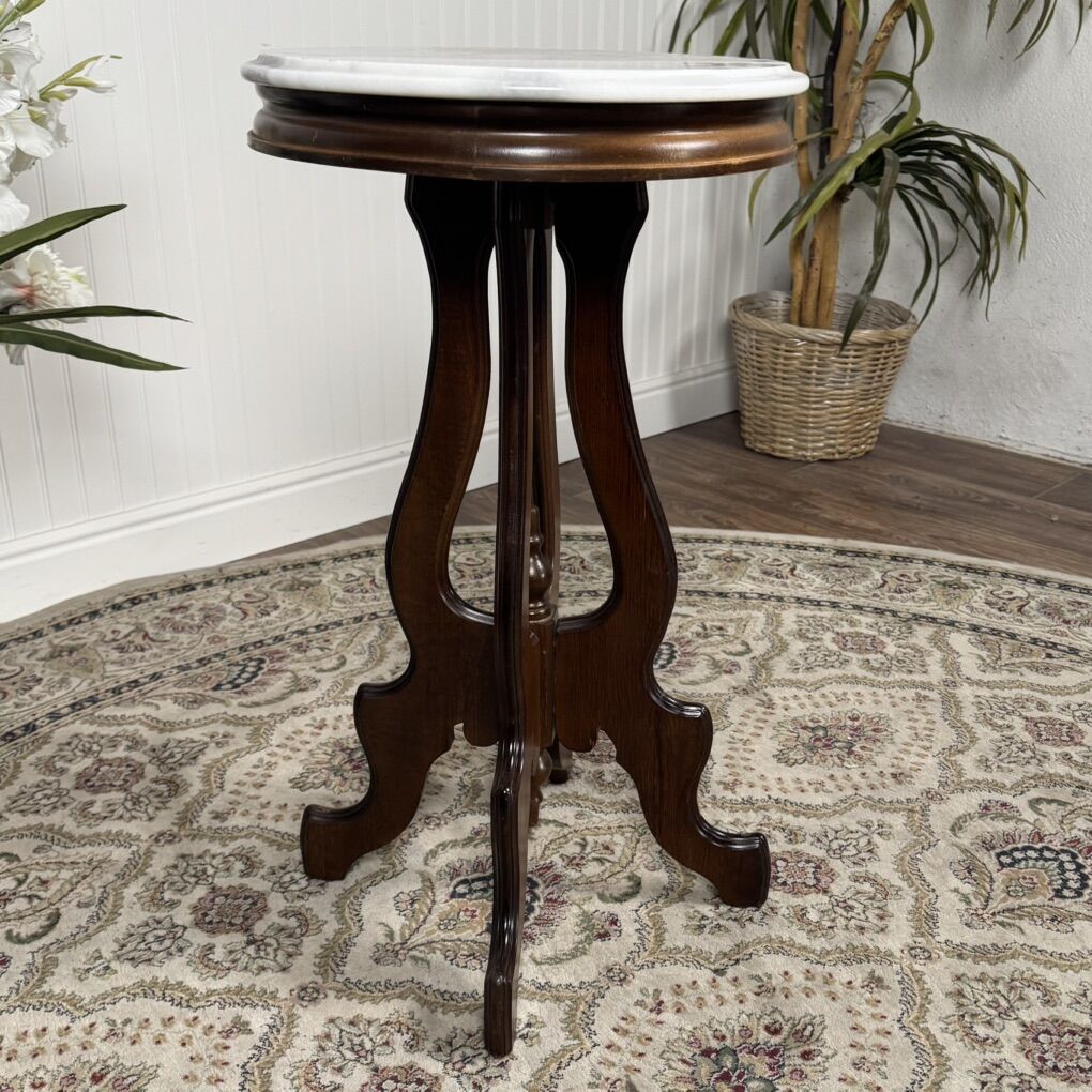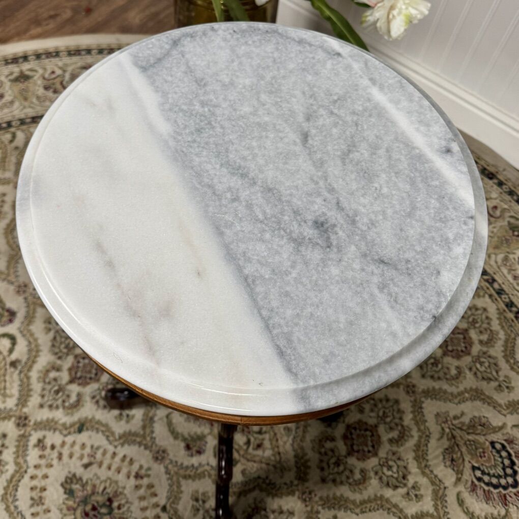 VenmoElegant vintage accent table with a real marble top and classic pedestal base. Beautiful natural veining and a rich wood finish—timeless and easy to style.