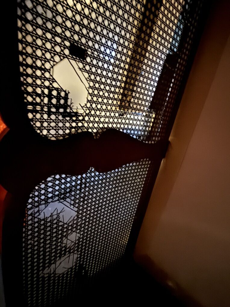 VenmoDark wood frame with cane webbing.