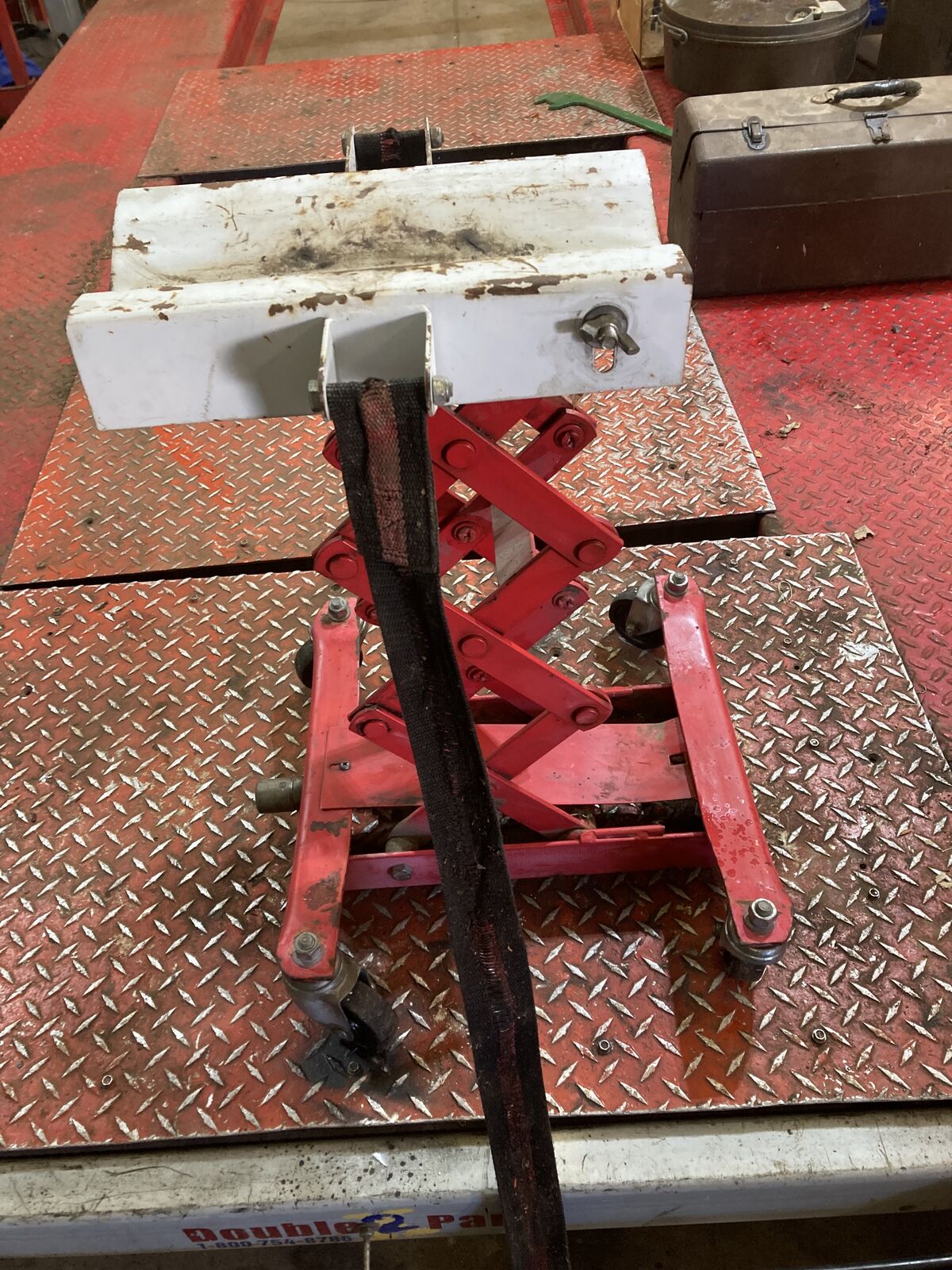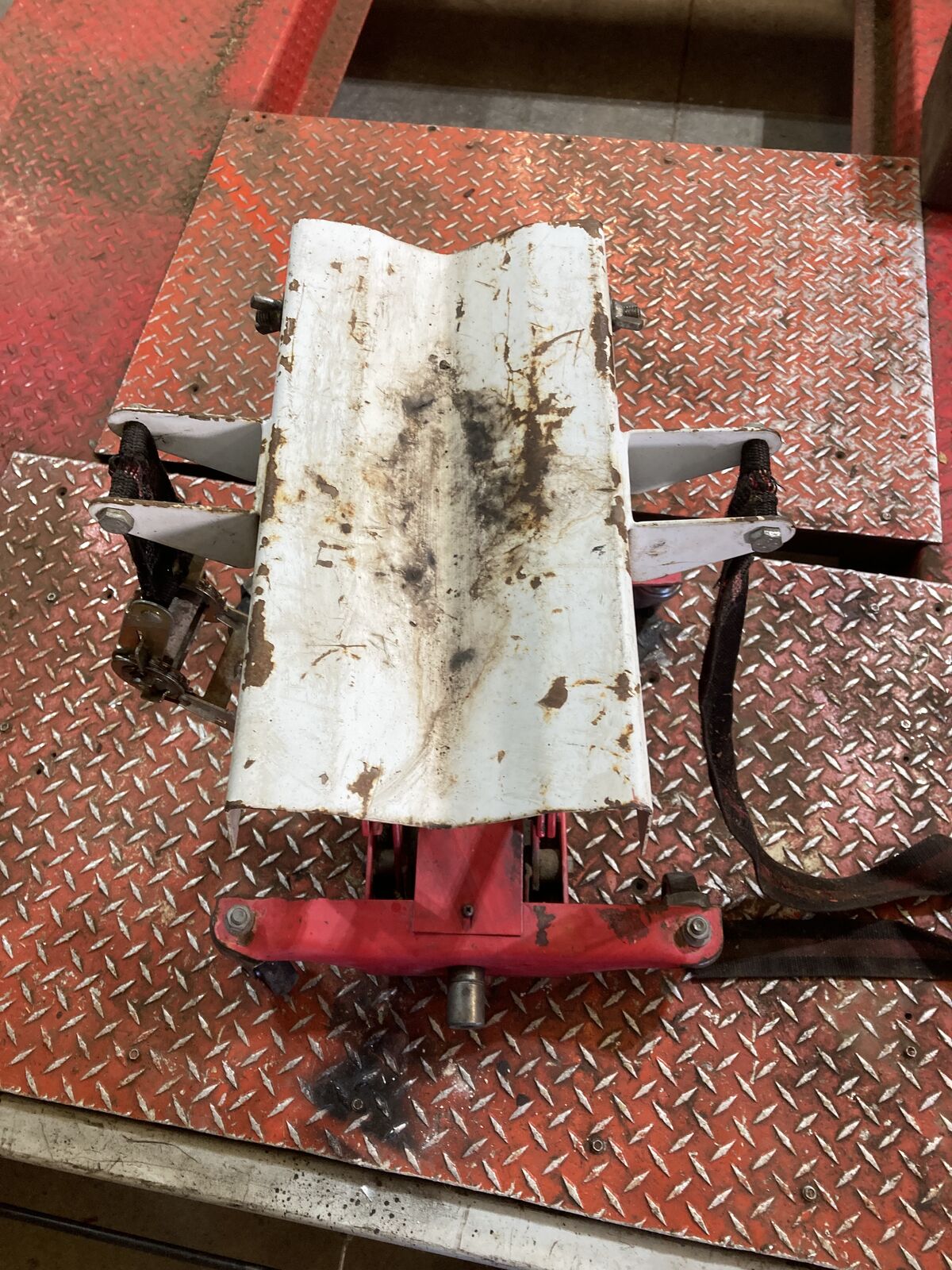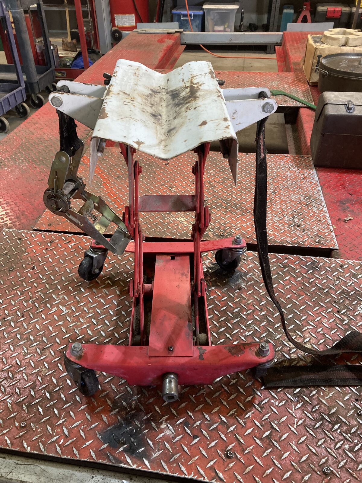 Rolling transmission jack. Height dimension is shown. $90 dollars.