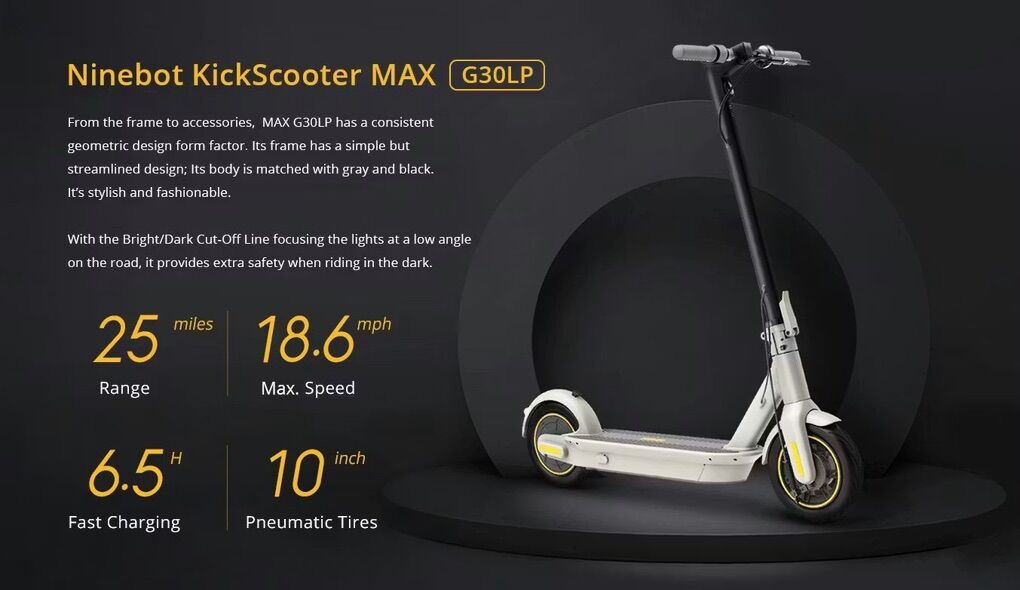 The Segway Ninebot KickScooter MAX G30LP delivers premium performance at a value-packed price. With a powerful 350W rear-wheel motor, 25-mile range, and the ability to climb 20% hill grades, it’s built for urban commuters and adventure seekers alike.