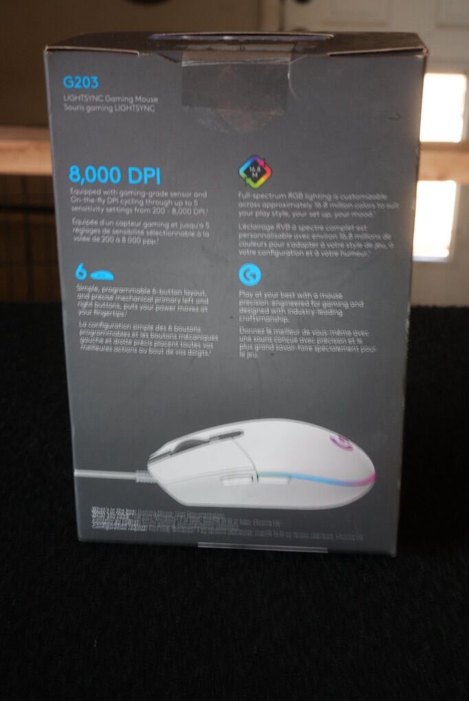 Logitech G203 wired gaming mouse. Works perfectly, lightly used. Great precision, fast response, and comfortable for everyday gaming or work.