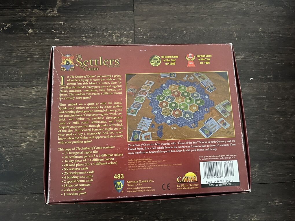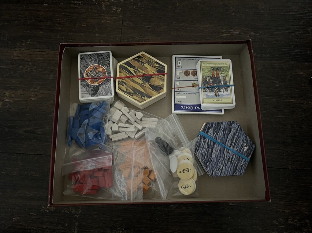 VenmoLot of vintage Catan board games. Includes settlers of Catan, Seafarers of Catan and Cities & Knights of Catan as well as the 5/6 player expansions of each. All pieces included. The last picture is extra game pieces that are included. The 5/6 player expansions do NOT include their boxes. All in good condition.
