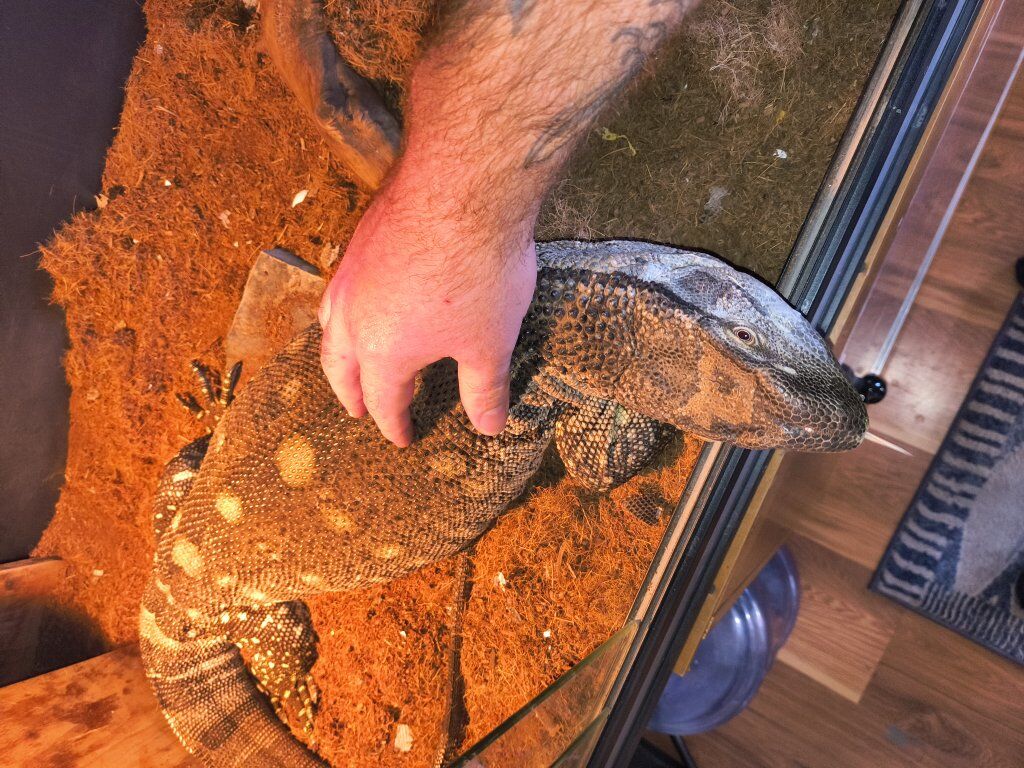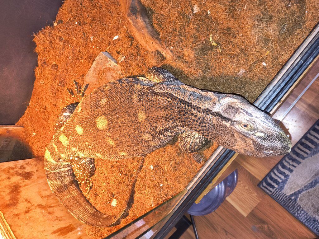 ZelleI have a few reptiles that I am considering rehoming. Figured times are tuff so maybe trading would be better. I have a approximately 3 year old Blackthroat monitor. His name is Prince. He is fairly handleable. He does get defensive on the ground. This animal is for those with vast experience and knowledge. He does not come with his enclosure. He can come with a temporary one if the trade is right. However he will need to upgrade from it soon. Interested in things with motors, tools, 2nd amendment items, baby items, queen size bed and frame, dressers, cash, or if you have something else for trade let's see if we can make a deal