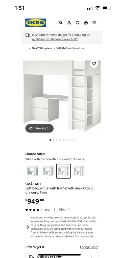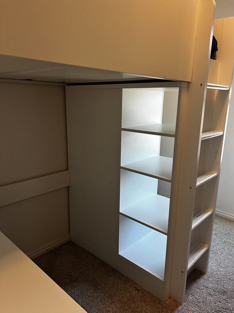 ApplePayA used Ikea SMASTAD twin loft bed - white with birch accents on the drawer fronts and cabinet doors.