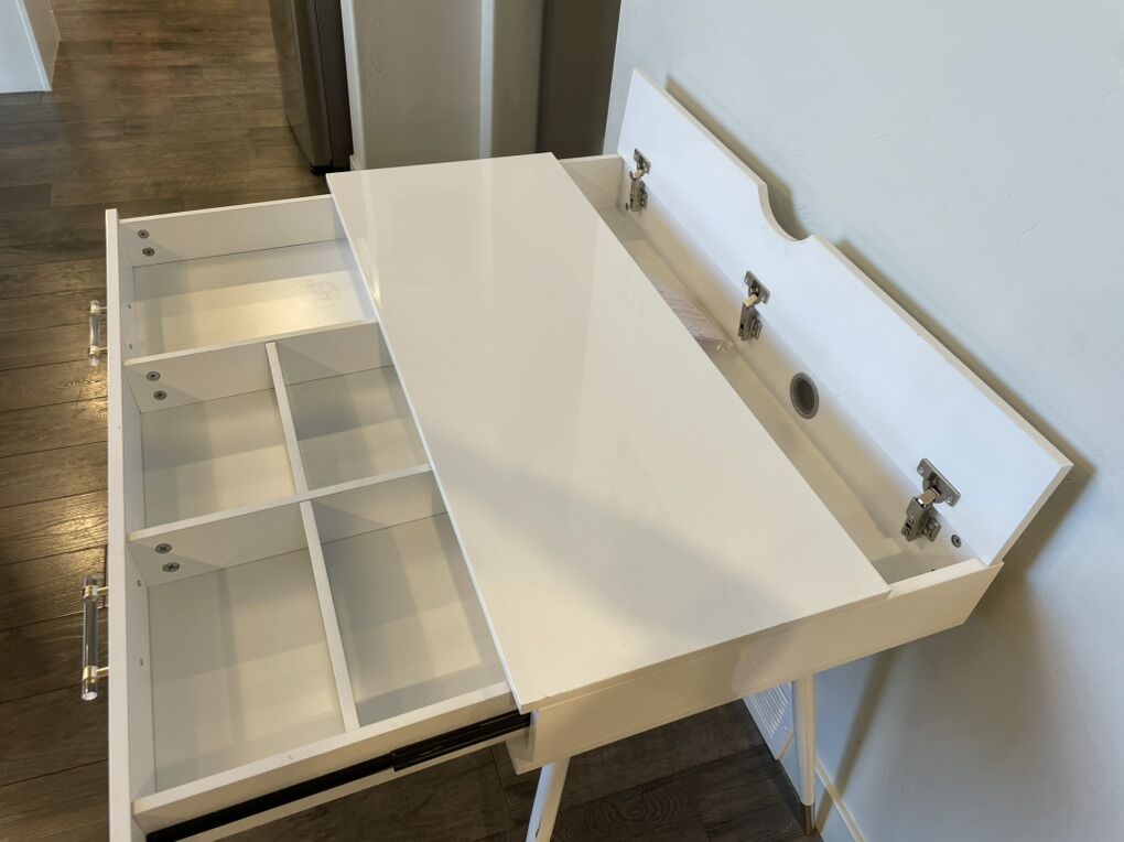 VenmoThis table is heavy and solid built with foldable locked up legs for easy store/transport. Dimensions 39 and half inches wide, 22 inches deep and 29 and half inches high. We are pet/smokes free home pick up in stansbury