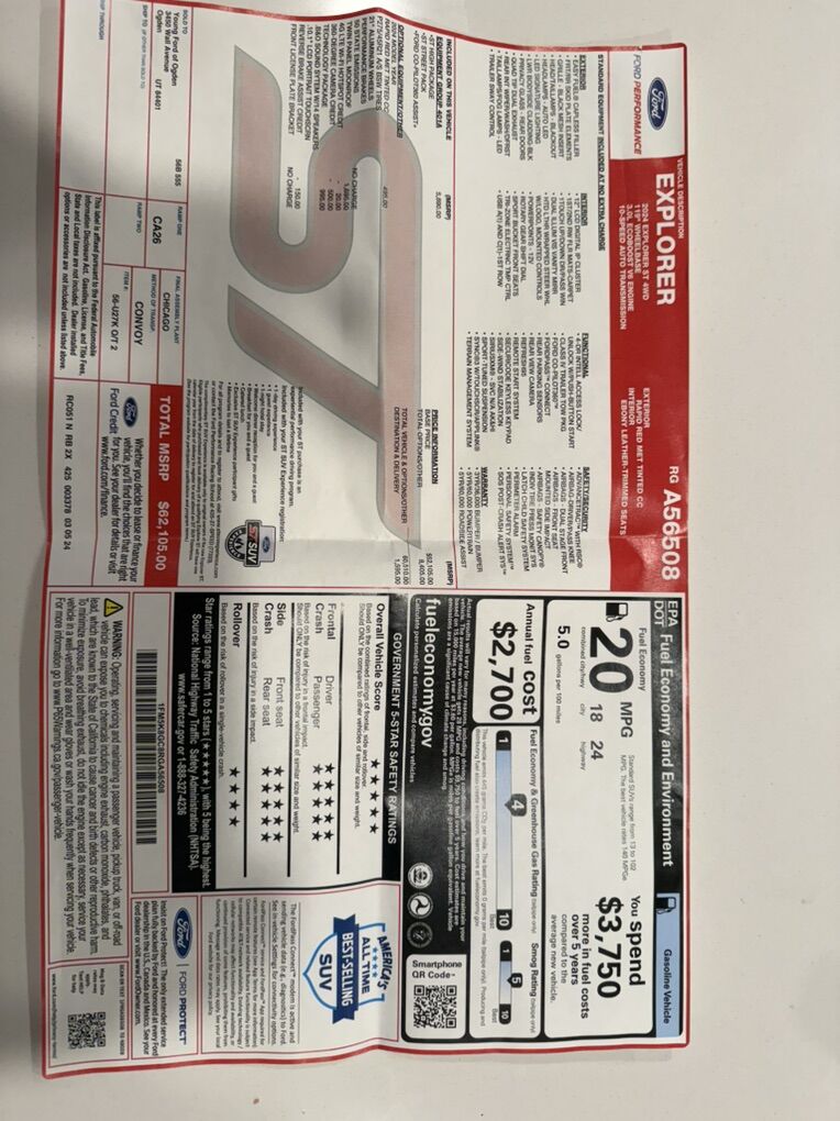 2024 Ford Explorer ST Amazing condition SUV. This car has been well loved and babied. I hate to sell it but it’s just sitting in the driveway. This has been so much fun to drive! It’s been such a great family car. This car is all stock, nothing has been done to it except tint. 1 owner, 0 accidents Clean title 15,860 miles VIN: 1FM5K8GC8RGA56508 3.0L twin-turbo ecoboost V6 engine making 400 horsepower and 415 lb-ft torque. It sounds amazing stock! 10-speed automatic with select shift and paddle shifters Sport tuned suspension Black rims 20” ST branded seats Maroon Red Has limo tint on the back windows and eyebrow. Has legal tint on front two windows. Backup camera Panoramic sunroof Roof rails Apple CarPlay Giant touchscreen B&O sound system Adaptive cruise control Heated and cooled seats Weather tech floor mats 4x4 Tows capacity 5,600 lbs 2 key fobs (remote start with fobs or smartphone ) General maintenance has always been done on time since I bought it in 2024