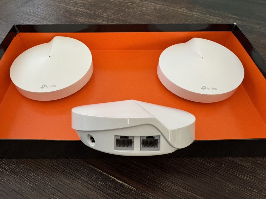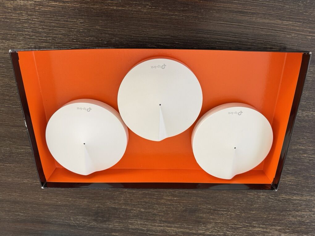 Comes with three M5 devices, power cords, and instruction booklet. Easy to set up and covers up to 5500 sq feet.