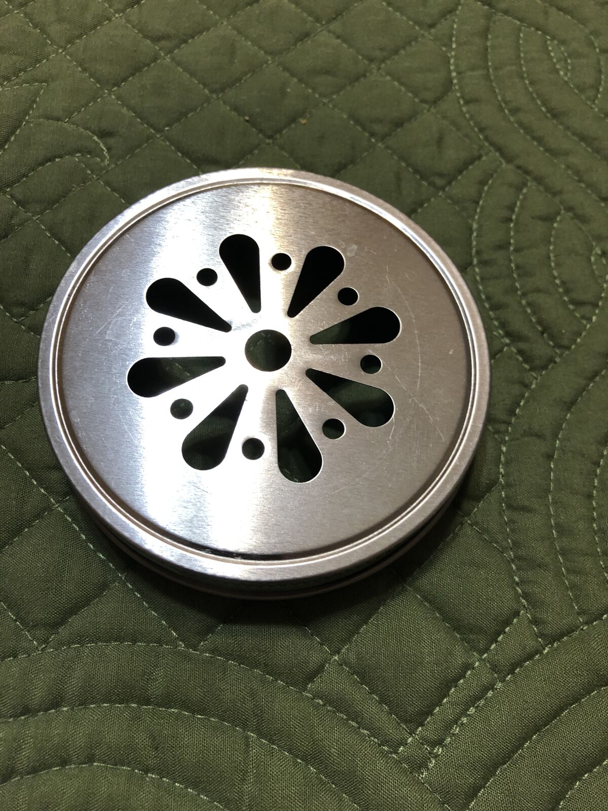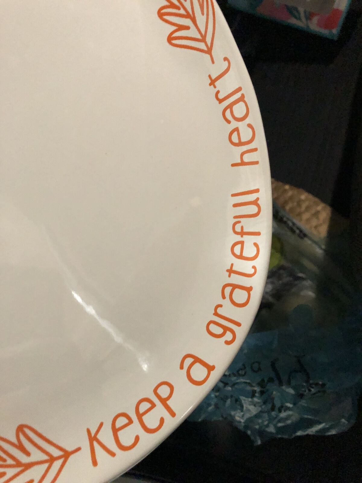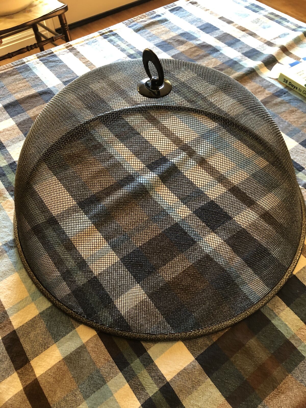 Black metal mesh food cover $5, Cuissinart NEW utensils long handles $12 for three, lids, put on any wide mouth canning jar,add cinnamon sticks and cloves or your favorite dried flower mix $1.25 each, wood spoons and rubber spatula all for $5,pink metal sifter with red XOX $5, set of 5 all white dinner plates $15,,Grateful heart Platter $3, glass cake plate made by Home Interiors $10 like new, HOME Sweet Home on wood $8