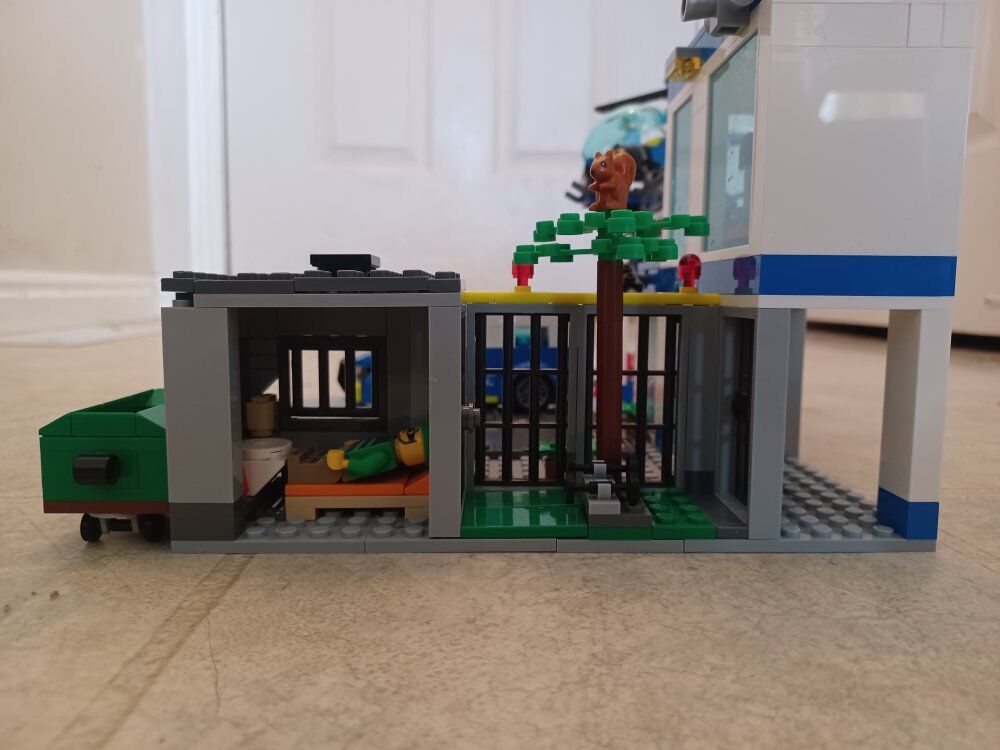 This is in good condition with only one missing piece, my son wanted to sell this. very fun, comes with police station, 3 vehicles, 3 police, a police dog, 2 robbers, a squirl, and accessories.