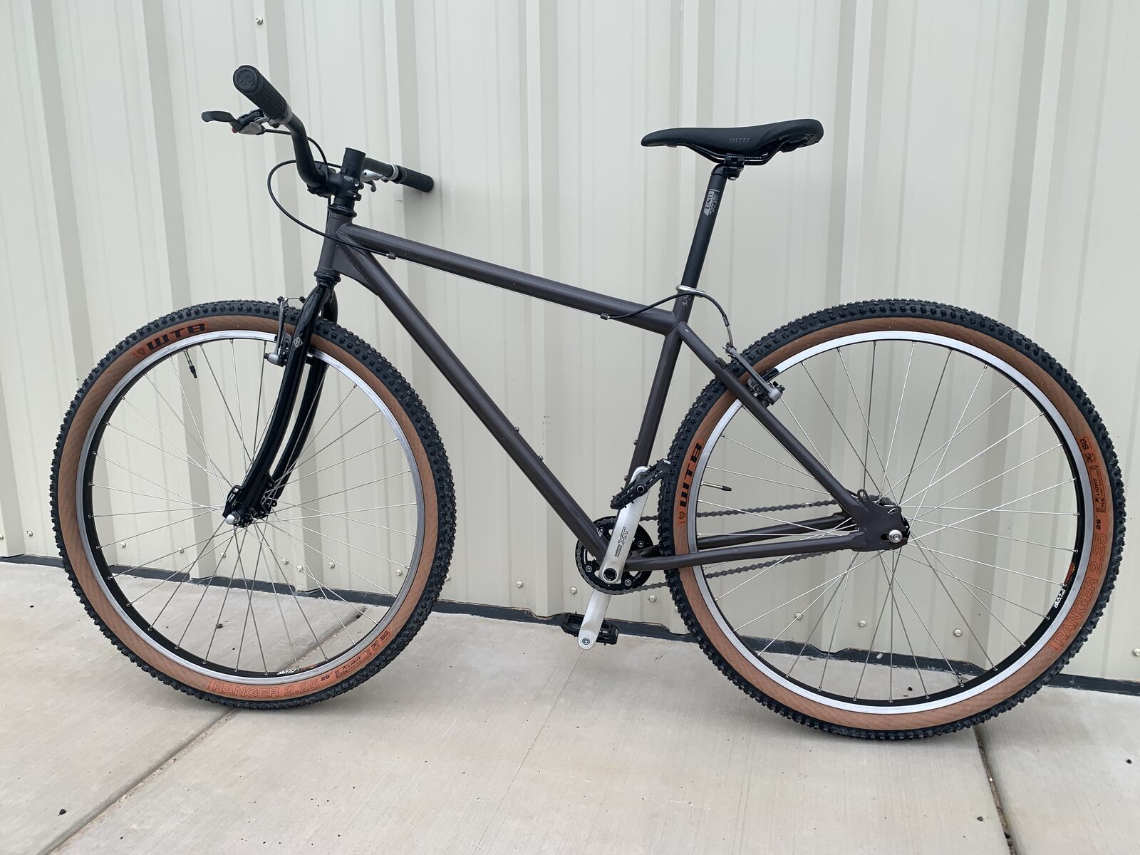 Bike was built and restored as a winter project and has zero miles on it since completion. It was purposely assembled as low-tech as possible as an homage to the early days of roots mountainbiking.