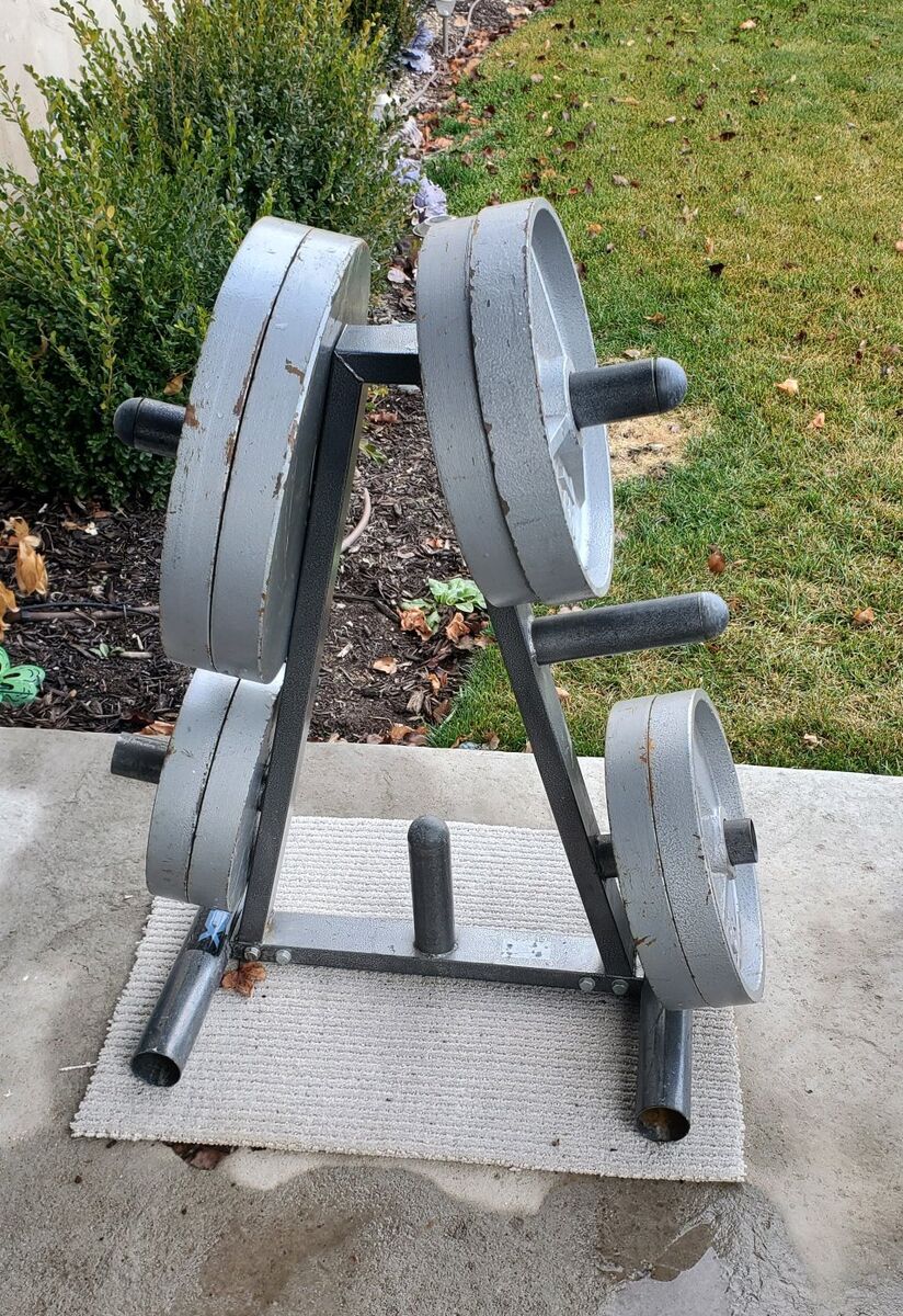 ZelleRogue Sml-1 70- Monster Lite Squat Stand with pull up bar 280 lbs of weight with weight tree (45x2, 35x4, 25x2) a flat bench mats and an olympic bar with clips